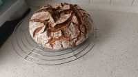 2/3tel der Teigmenge vom Zero Fussel gebacken…..mein trainiertes SauerteigAST ist jetzt wirklich wesentlich besser, habe auch die Knetschüssel vorgewärmt sowie mit fast 50 Grad Wasser geschüttet und hatte so eine Teigtemperatur von durchschnittlich 27-29 Grad! Bei der Kesselgare wie bei der Endgare sprang der Teig sichtbar an, Fingertest auch annähernd wollig nach ungefähr jeweils 45 Min. ….. dann das Ergebnis wie am Bild (im vorgeheizten gußeisen Topf 220 Grad, nach 15 min. Deckel weg, auf 200 Grad fallend)…am nächsten Tag angeschnitten! Leider wieder Krume zu dicht und krümelig?!? Mehle von bonˋgu ….. Champagnerrg. Vollkorn und Rudolph 997!