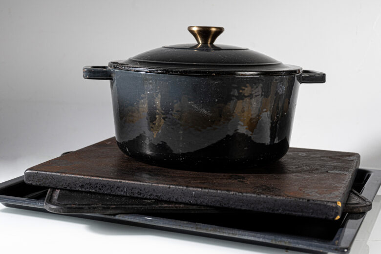 Der Witz ist, dass ich bei alledem nicht das Gefühl habe, dass die Pfanne zu heiß vorgeheizt ist. Die Luft im Inneren der Pfanne hat beim Öffnen ca. 250 Grad, nicht mehr, die Pfanne selbst ebenfalls, mit Schwankungen, der Boden hat auch schon mal nur ca. 230 Grad.