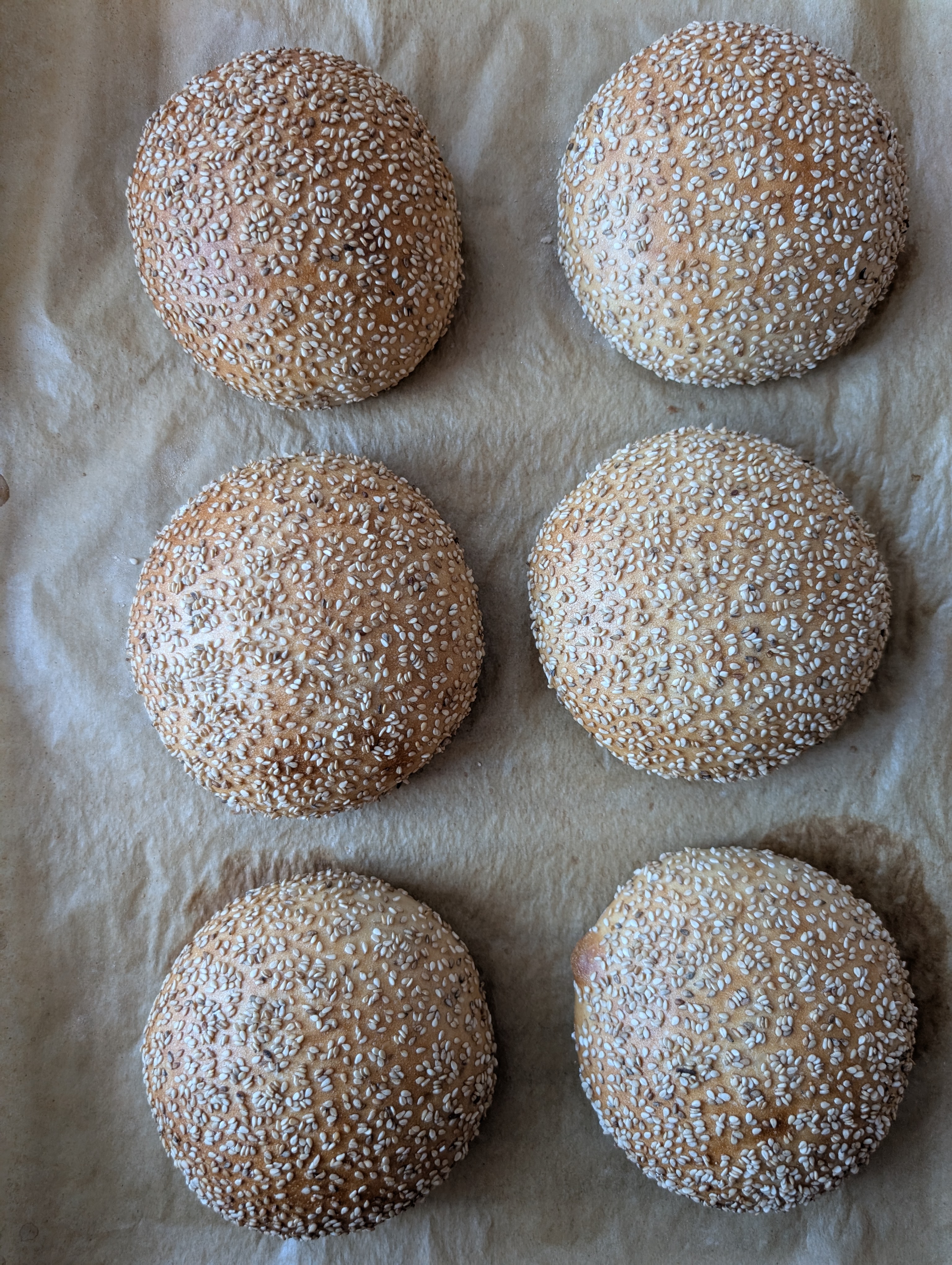 ein gutes Rezept. Habe die halbe Menge gemacht. Zwei Burgerbrötchen – mit schwarzem Sesam. Und 4 Hotdogbrötchen für morgen.