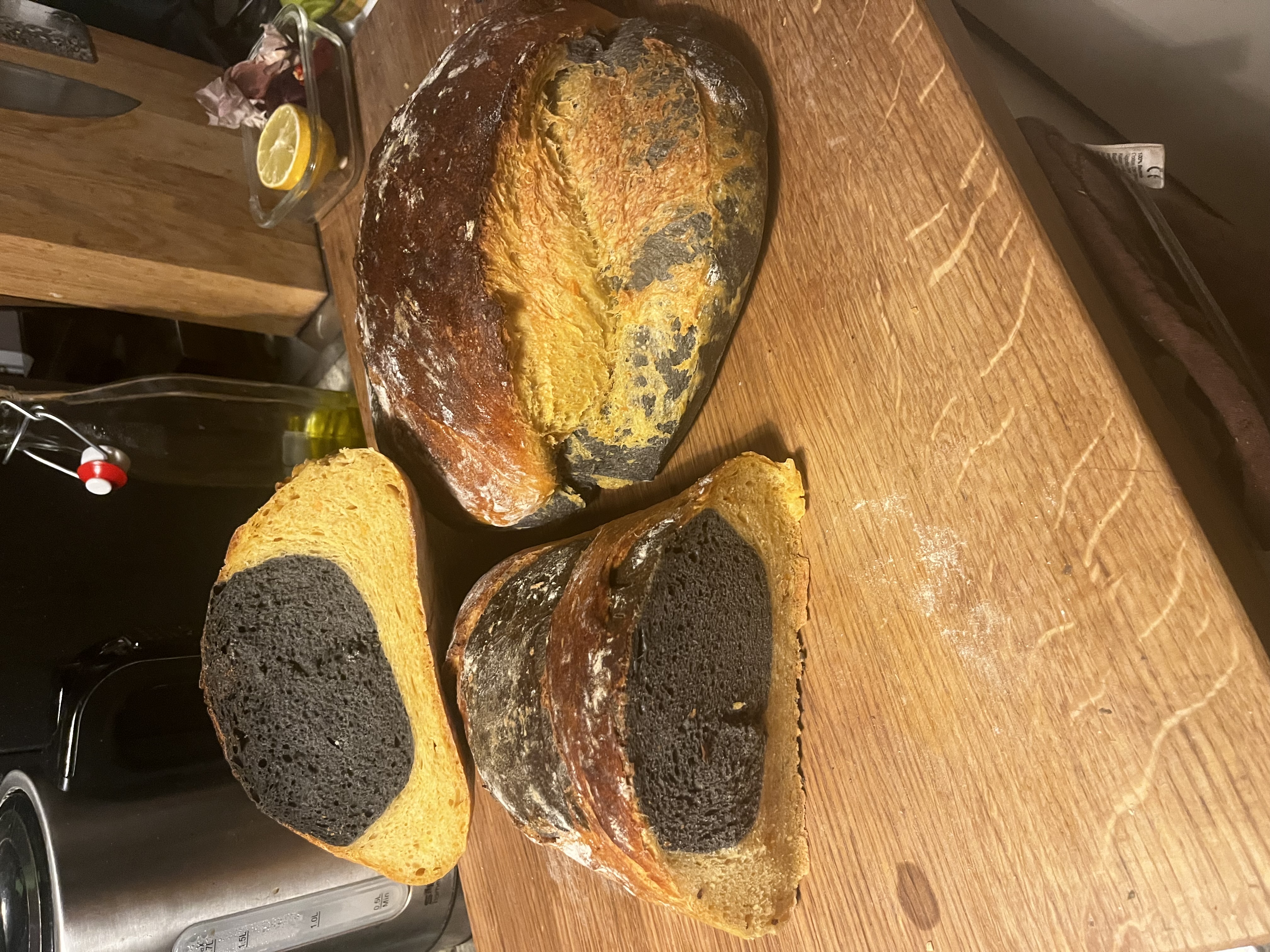 Jetzt ist der Komet auch bei mir eingetroffen.Der Teig sah aus wie Fliesenkleber,Brot ist dann aber doch gelungen.Verwendet habe ich 8g flüssige Sepiatinte.