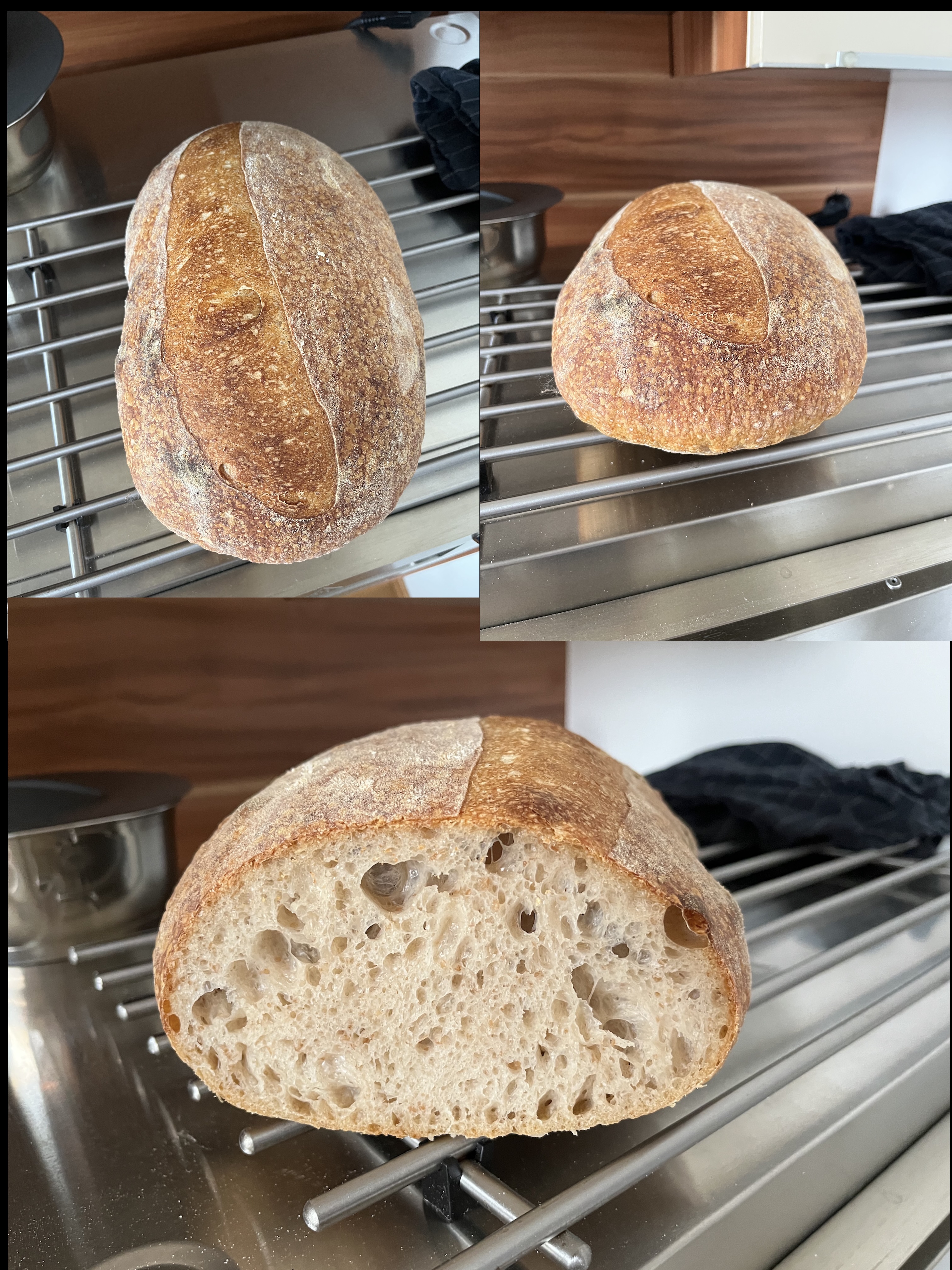 2. Mal mit Weizen, aber zu viel Wasser und zu wenig Aufarbeitung, Teig ist sehr flach im Ofen gelaufen.