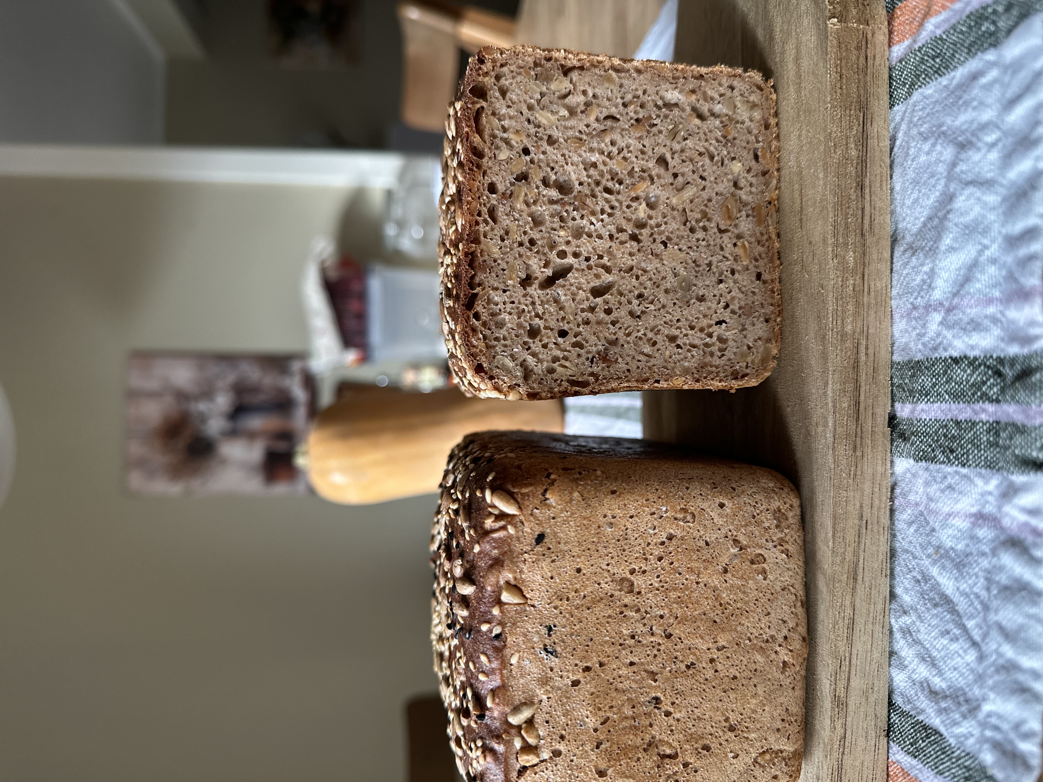 Das Dinkelvollkornbrot ist eines unserer Lieblingsbrote geworden. Ich backe die gesamte Teigmenge in EINER Kastenform, so dass ich einen Laib mit 1,5 kg erhalte.