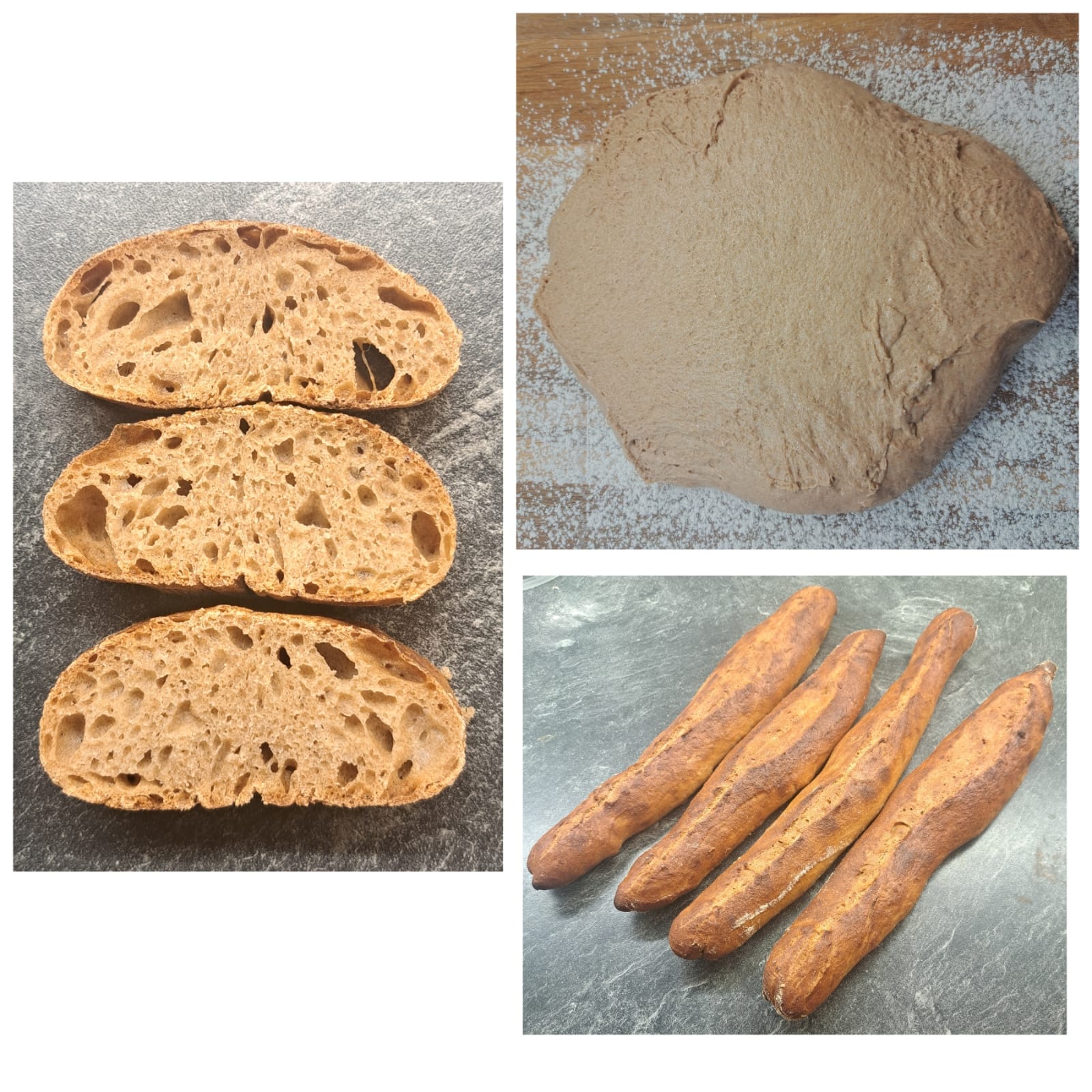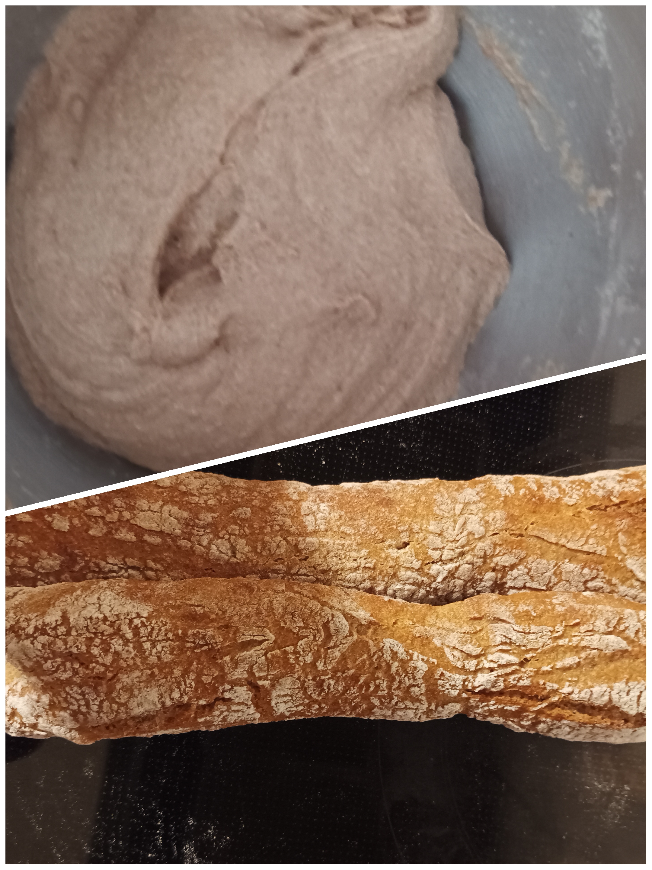 Weizenvollkornbaguette nach Rezept gebacken und kalt geführt über Nacht