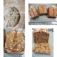 zum Finale noch das Dinkelvollkornbrot mit Sonnenblumenkernen und Karotten. Schmeckt wunderbar aus dem Backrahmen.