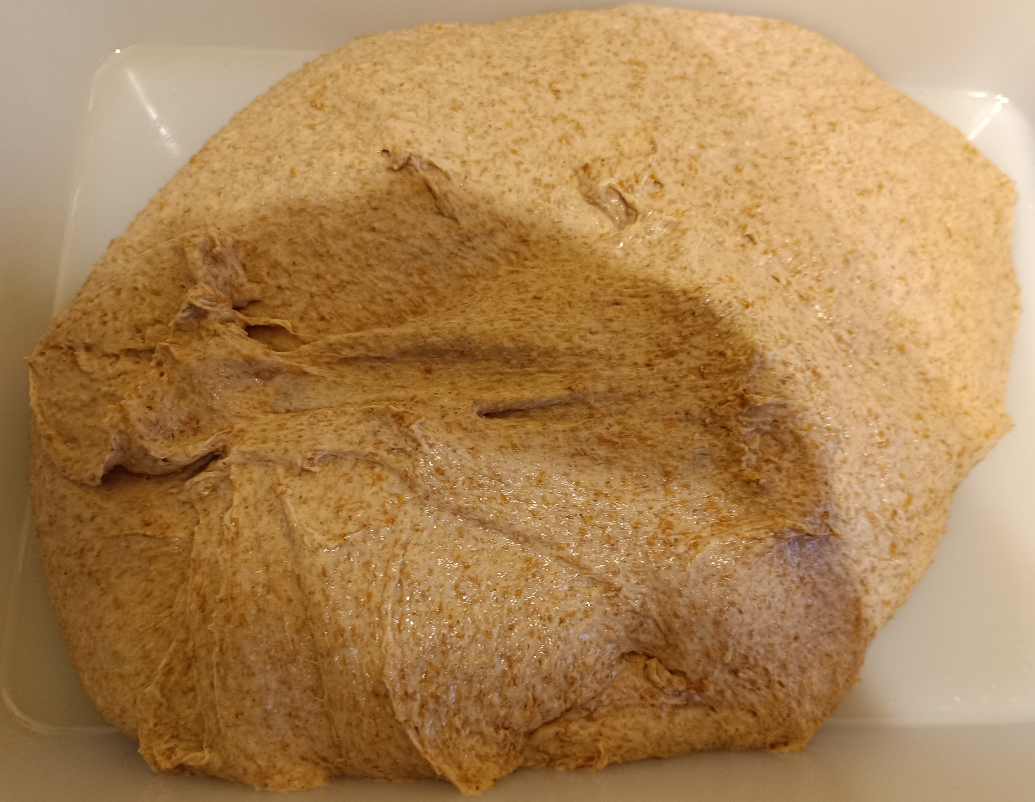 Leider reichte mein Vorrat an Dinkelvollkornmehl nicht mehr aus, so dass ich den Versuch wagte, die für den Hauptteig angegebene Menge mit Dinkelmehl 630 aufzuwiegen.
