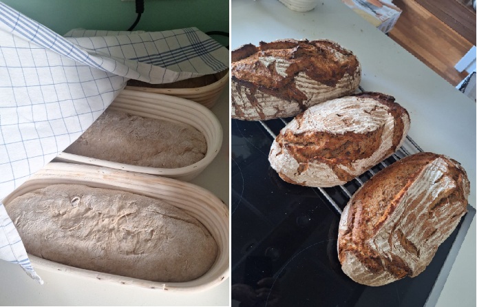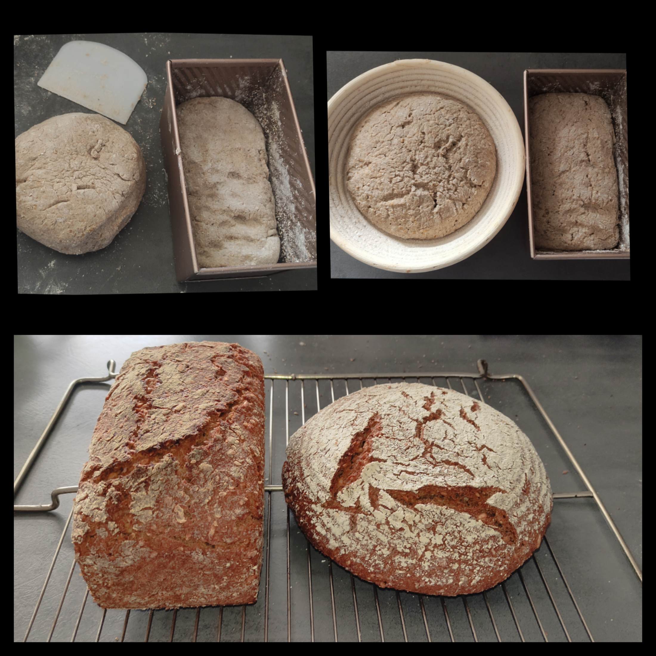 Hier mein Erstversuchs des Roggenkorns. Zum Ausprobieren einmal in der Kastenform und einmal frei geschoben.