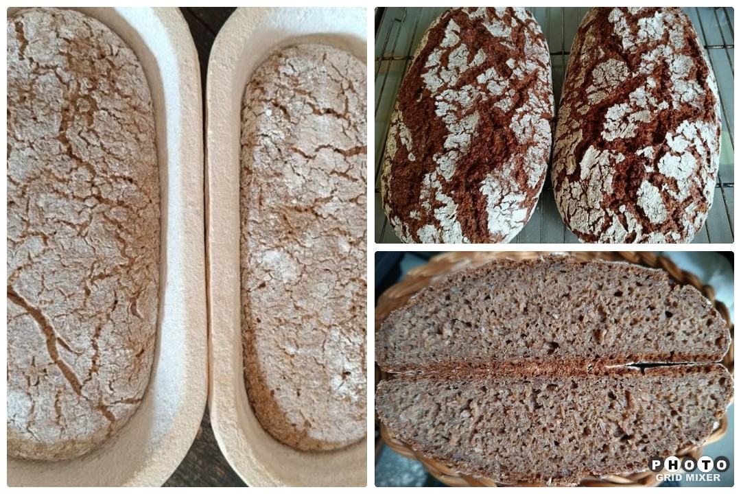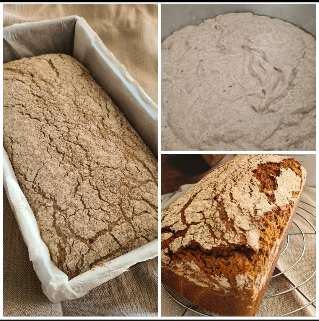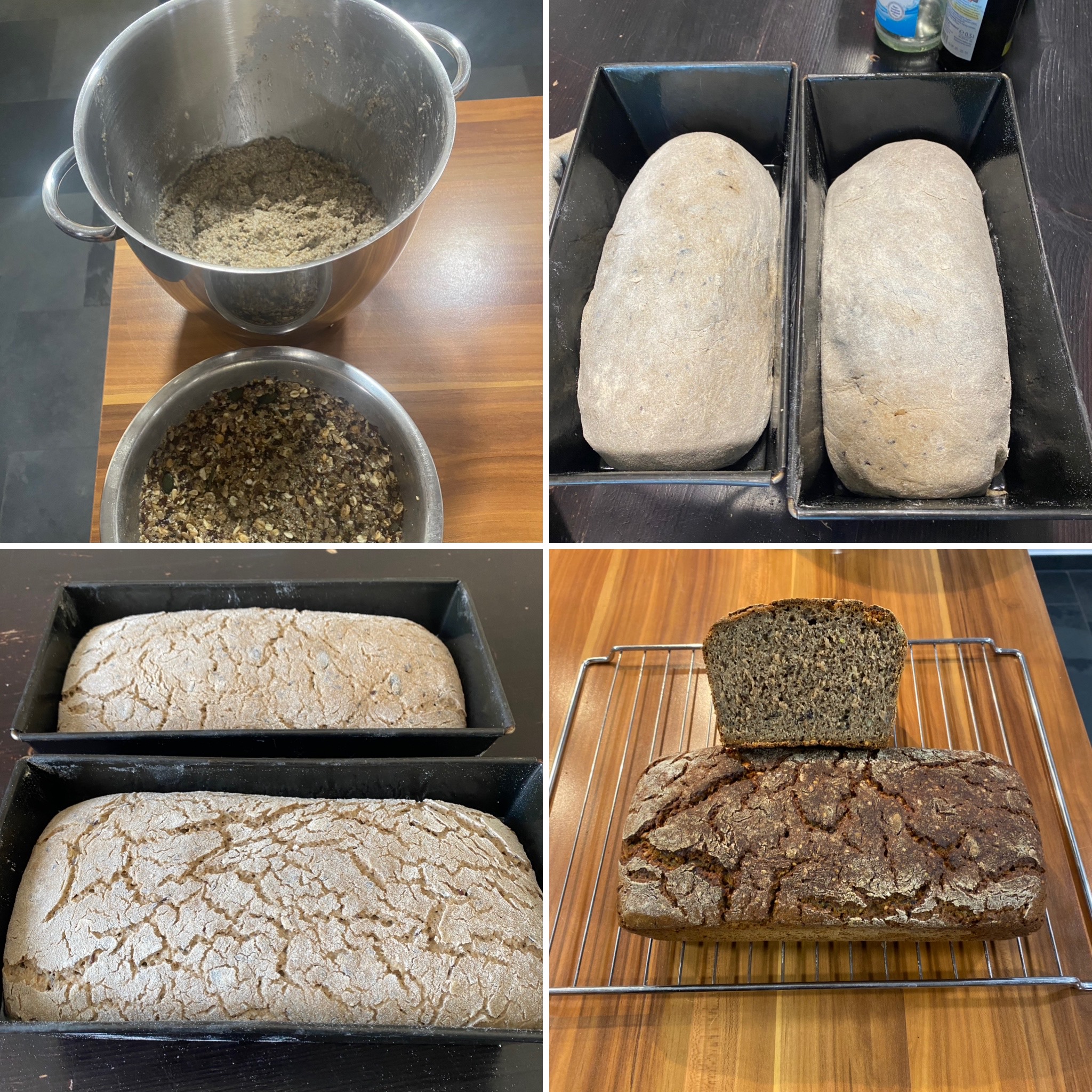 Und das Roggenkorn als zweites vorwiegend mit Waldstaudenroggen, da die großen Backformen mit dem Toastbrot besetzt waren, einfach frei geschoben gebacken, sehr lecker!