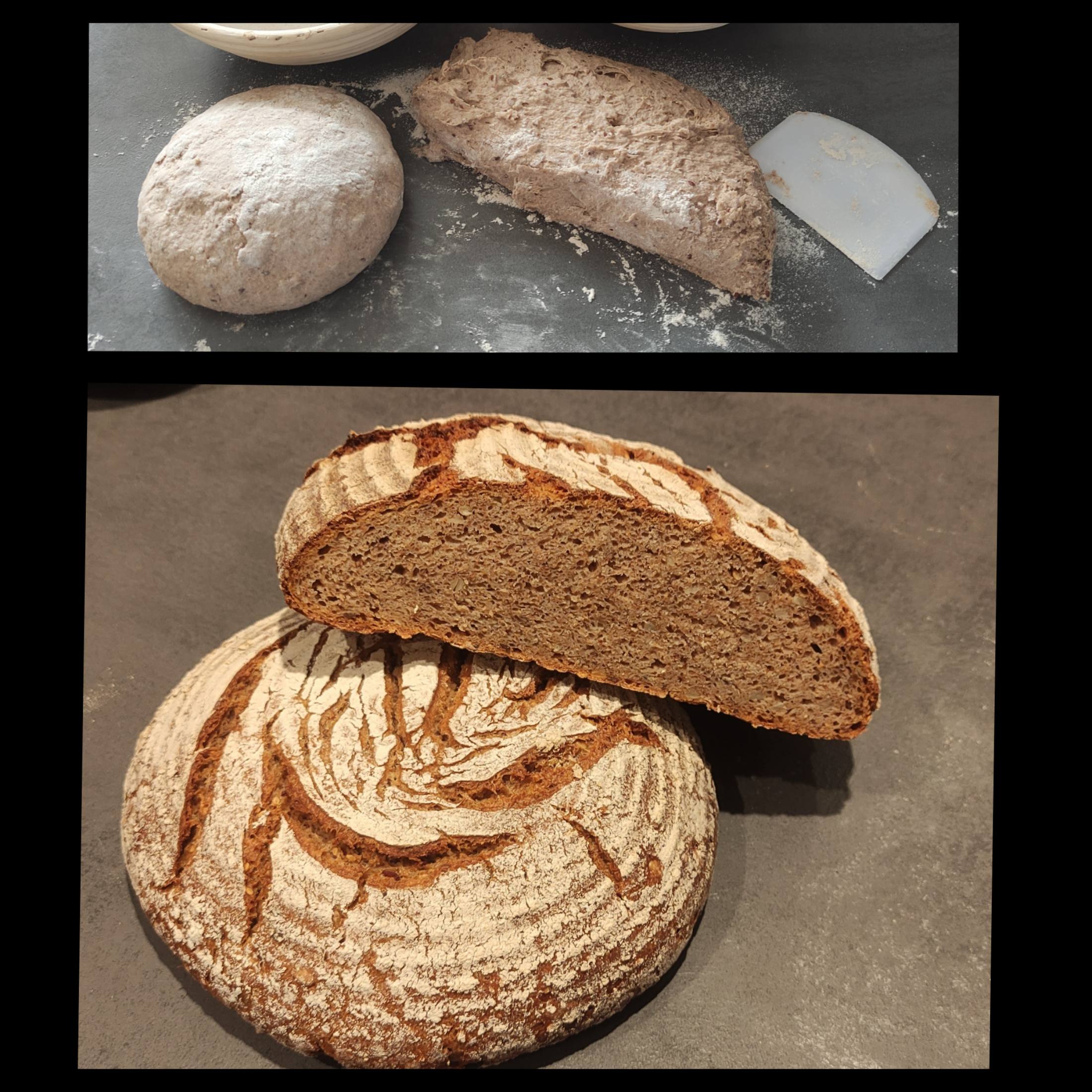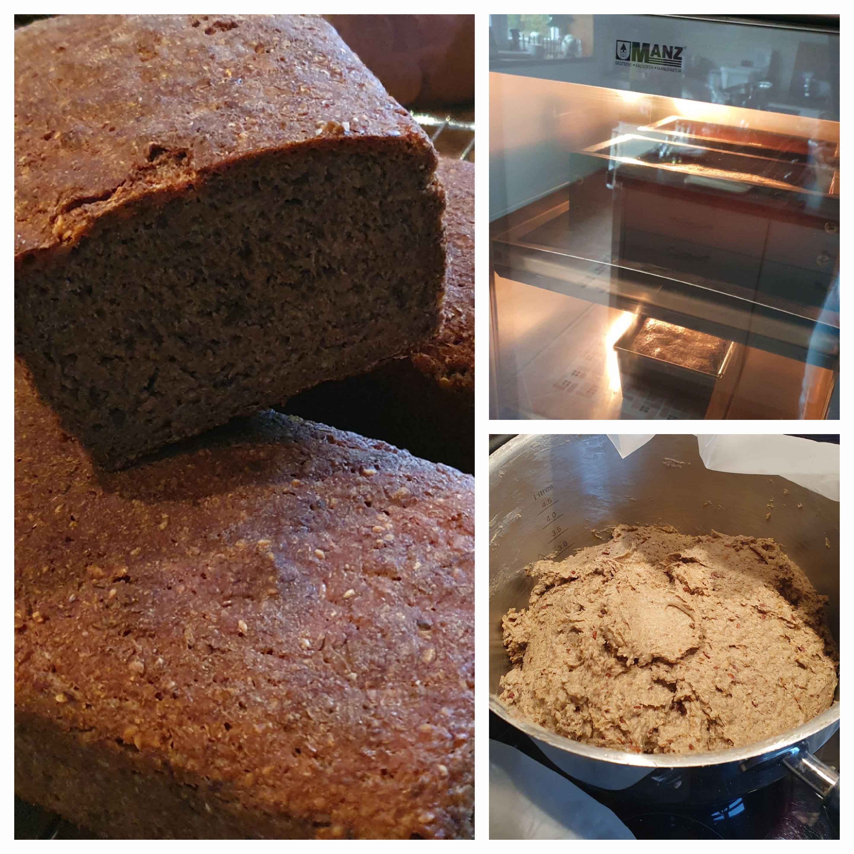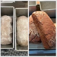 Am Wochenende ist mein neuer Backofen bei uns eingezogen! Ein Manz 30/3! Was soll ich sagen: ein Träumchen! Da musste ich gleich eins von Didis Rezepten ausprobieren! Ich habe mich für das Dachstein entschieden! Bei der original Menge kam die Kenwood an ihre Kapazitätsgrenze! 🤣 Den Teig habe ich auf zwei Holzbackrahmen und eine Kastenform aufgeteilt! 😋 Es ist köstlich!