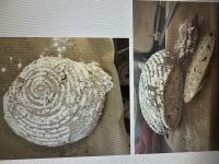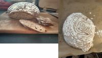 Ein Bild vom Trig direkt aus dem Gärkörbchen gestützt und eins vom fertigen Brot.
