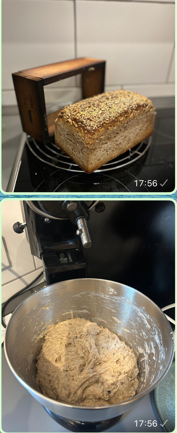 Heute habe ich das Dinkelvollkornbrot gebacken.