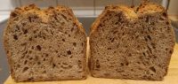 Unser Roggen vom letzten Jahr hätte noch eine ganze Menge Wasser vertragen… Beim ersten Mal halte ich mich jedoch immer “sklavisch” an das vorgegebene Rezept. Beim nächsten Mal werde ich die Teigmenge für meine Backformen erhöhen und auch noch Wasser zugeben.