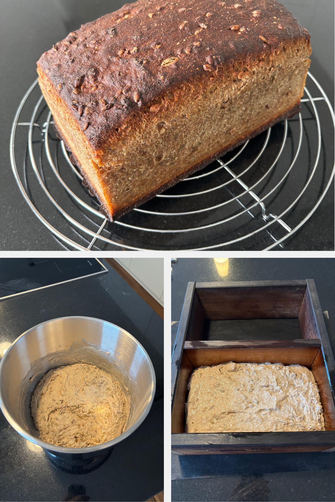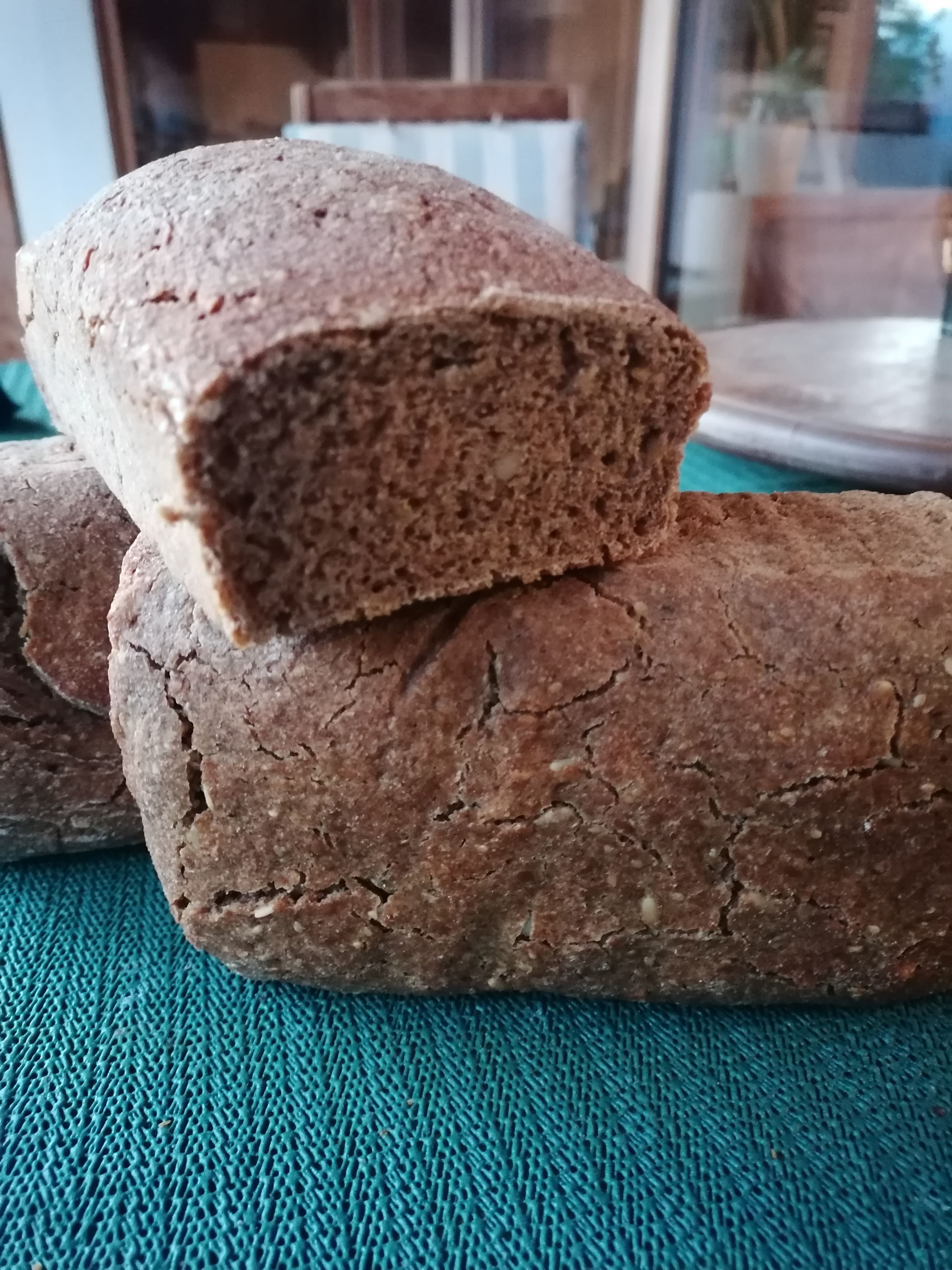 Gestern habe ich ein kleines Roggenkornbrot gebacken.