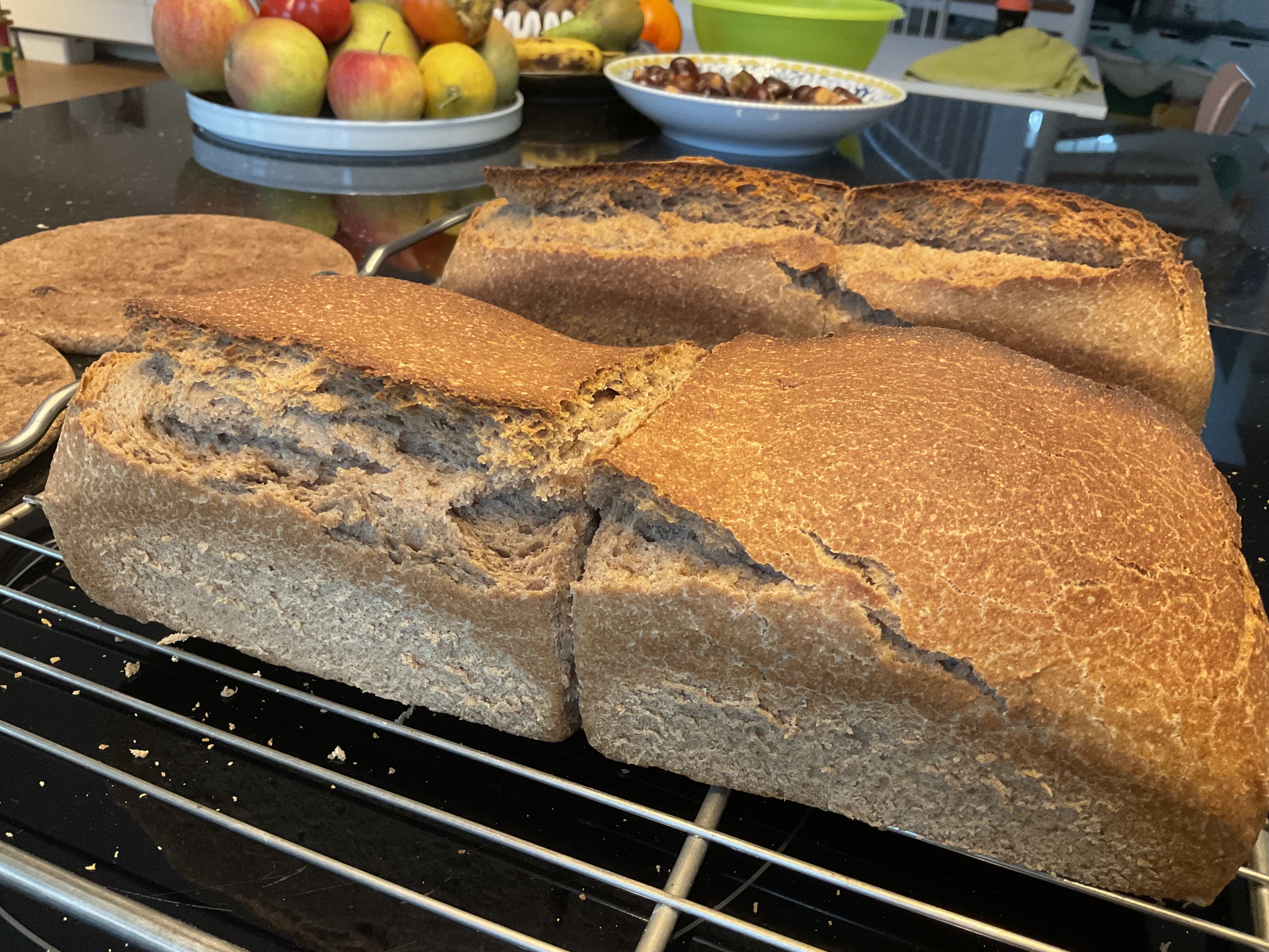Das Dachsteinbrot, freigeschoben gebacken und zu früh ( noch warm) angeschnitten