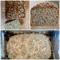 Einmal versuche ich es noch, da das Posten bis jetzt technisch anscheinend nicht geklappt hat. (Falls doch und plötzlich scheinen 5 Kommentare von mir auf – Sorry! Einfach wieder löschen, bitte) Hier ist mein Dinkelvollkornbrot mit Sonnenblumenkernen. Danke für das tolle Rezept!