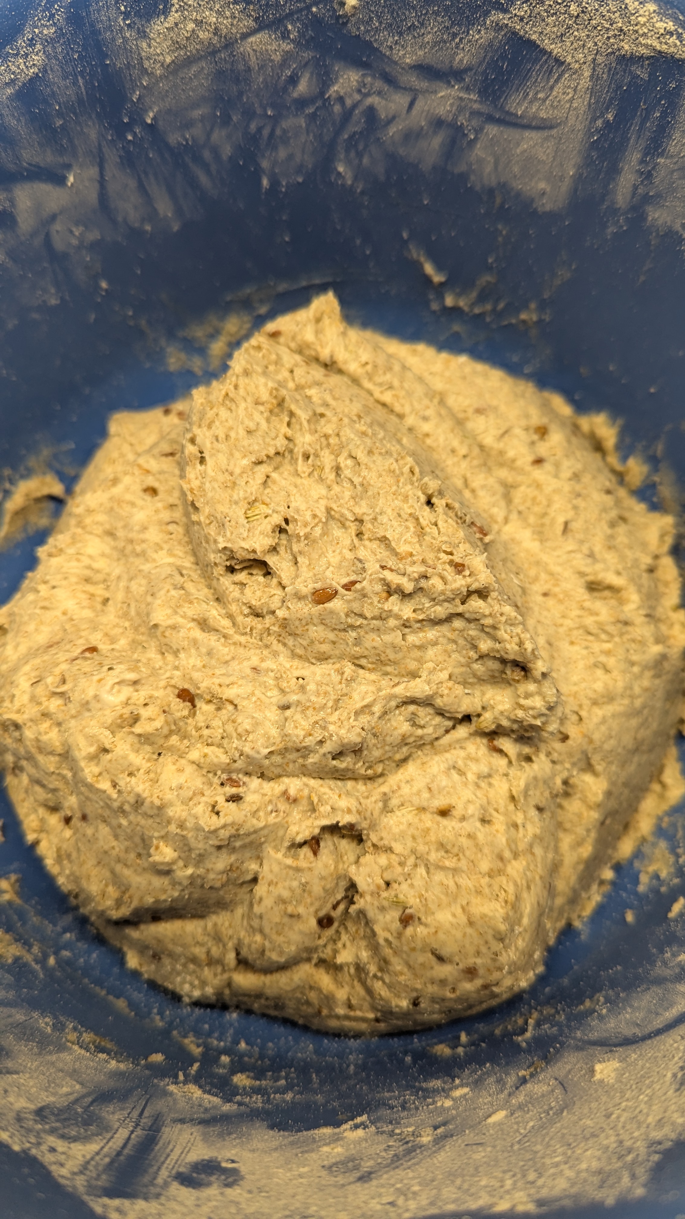 Dinkelm Vollkorn brot mit Sonnenblumen Kernen, das hätte wohl noch ein bisschen länger gehen dürfen, dass ist im Ofen Quasi explodiert 🙈 naja nächstes Mal aber danke fürs Rezept:)