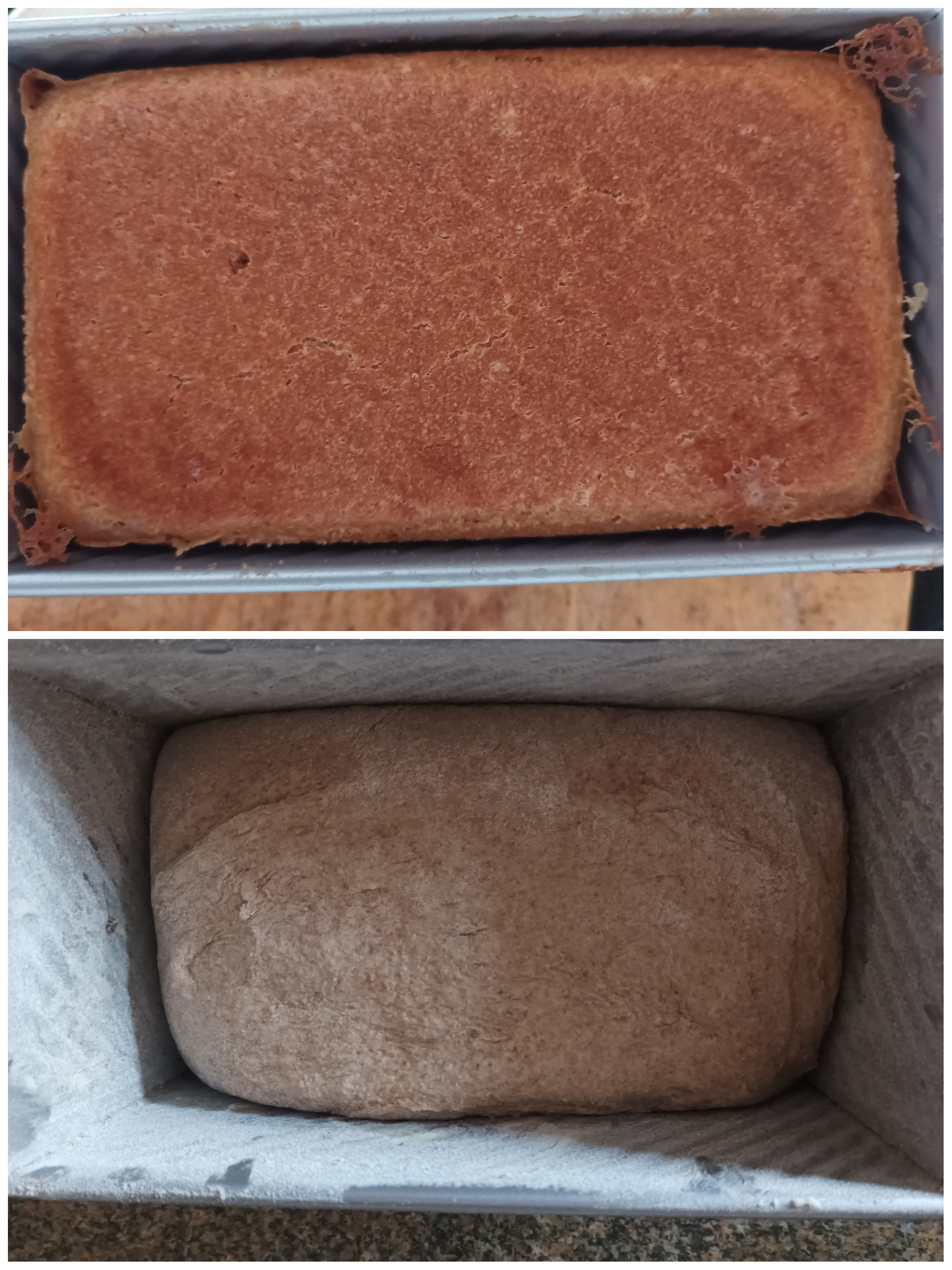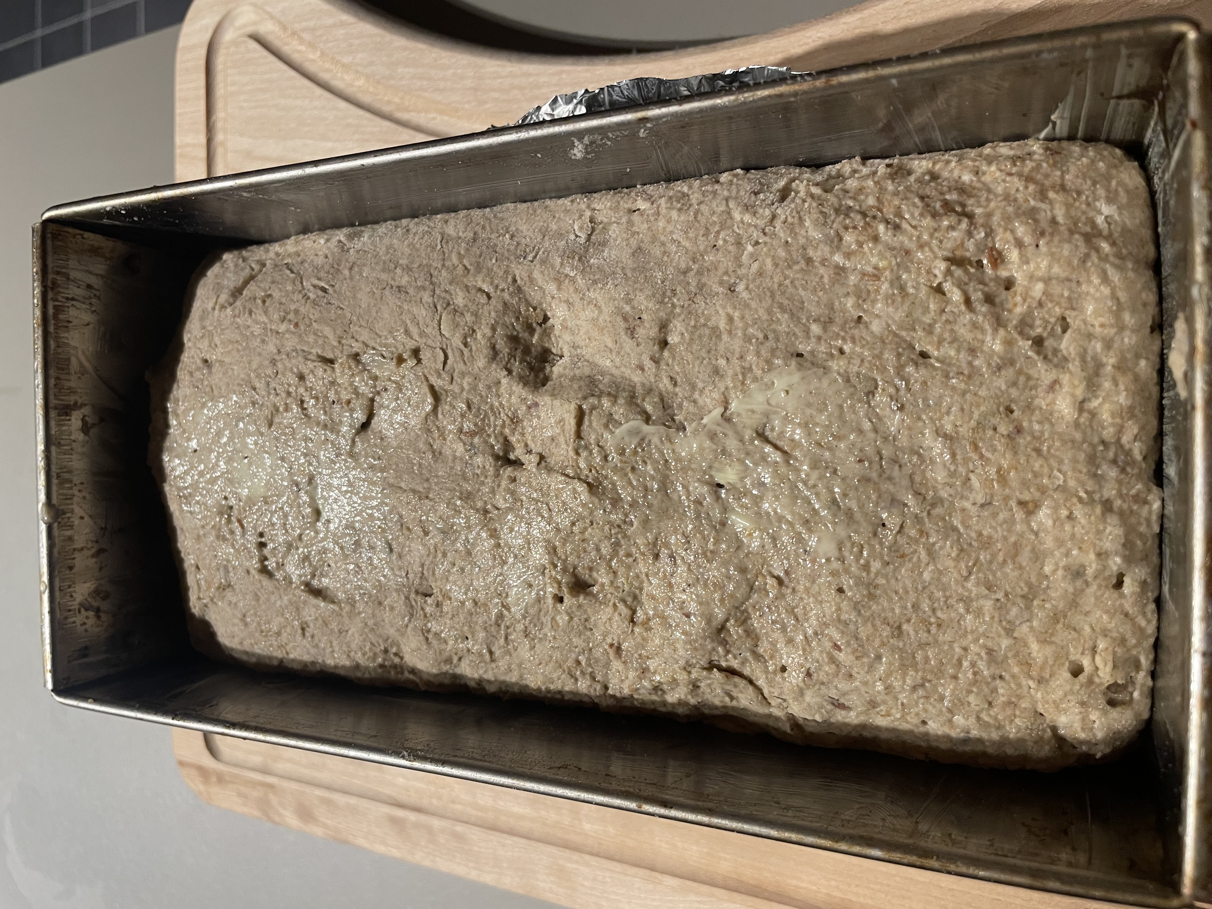 Und hier als vorletztes der Weizenvollkorntoast. Der Teig leider nur nur unter der Haube… Falls das nicht zählt, dann einfach löschen.