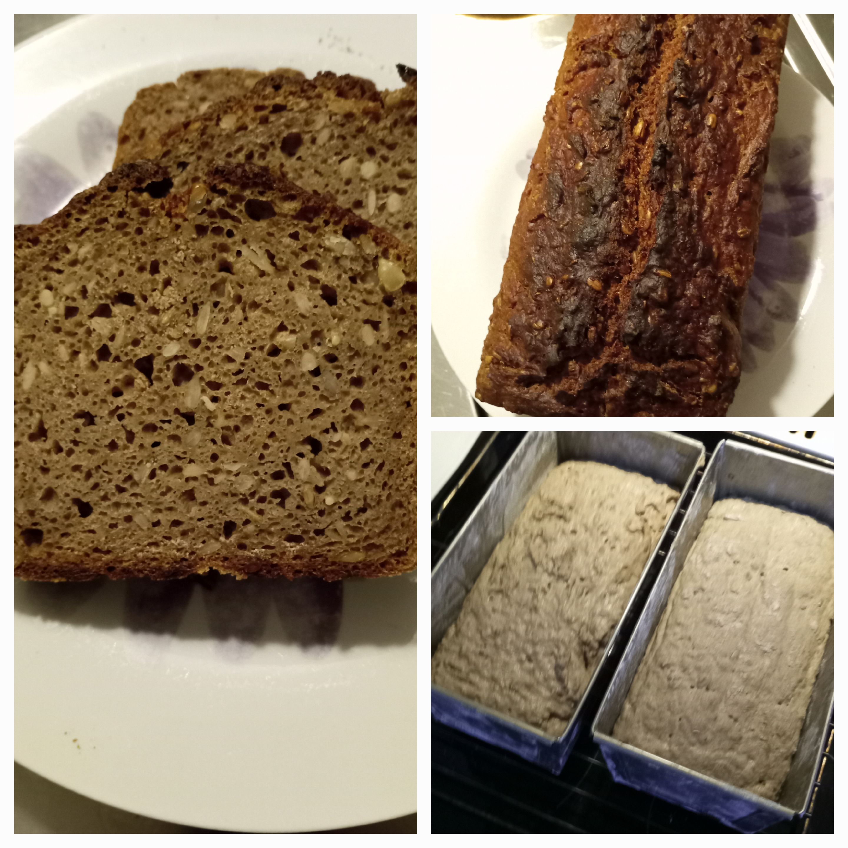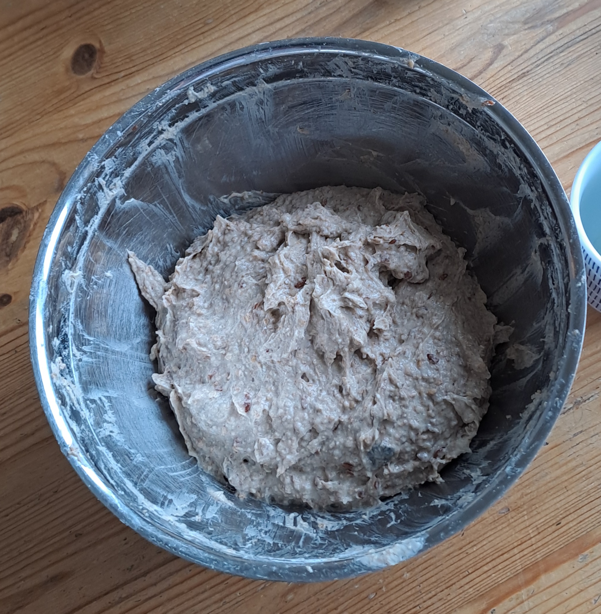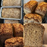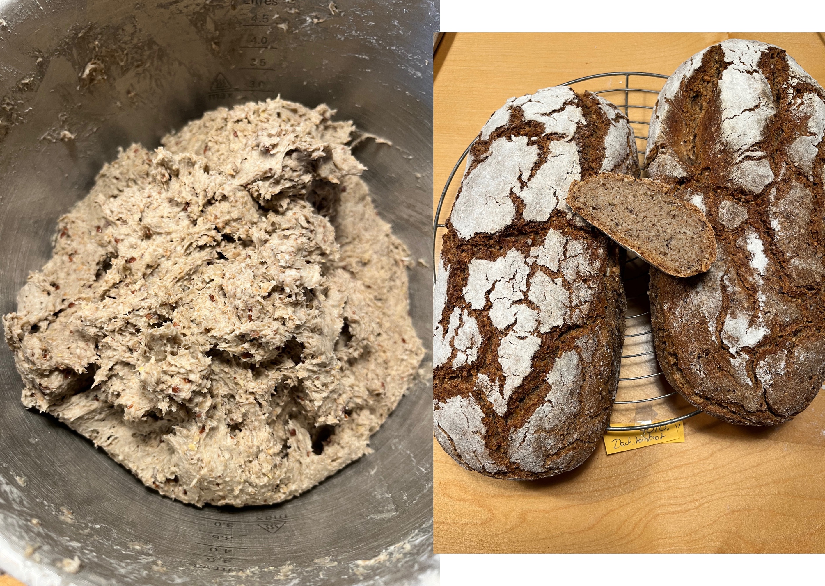Ich habe gestern das Dachsteinbrot gebacken, auf ein kleines Brot runtergerechnet (Rezept durch 6 geteilt). Ich habe für Brühstück und Hauptteig jeweils fast die doppelte Wassermenge genommen, so passte es gut, und auch etwas mehr Salz. Das Brot ist richtig lecker und total saftig 👍