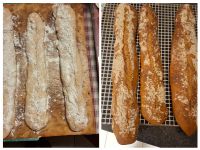 Hier nun mein Weizenvollkornbaguette! Habe nur zwei Baguette´s gemacht, da ich auch noch Brötchen brauchte.