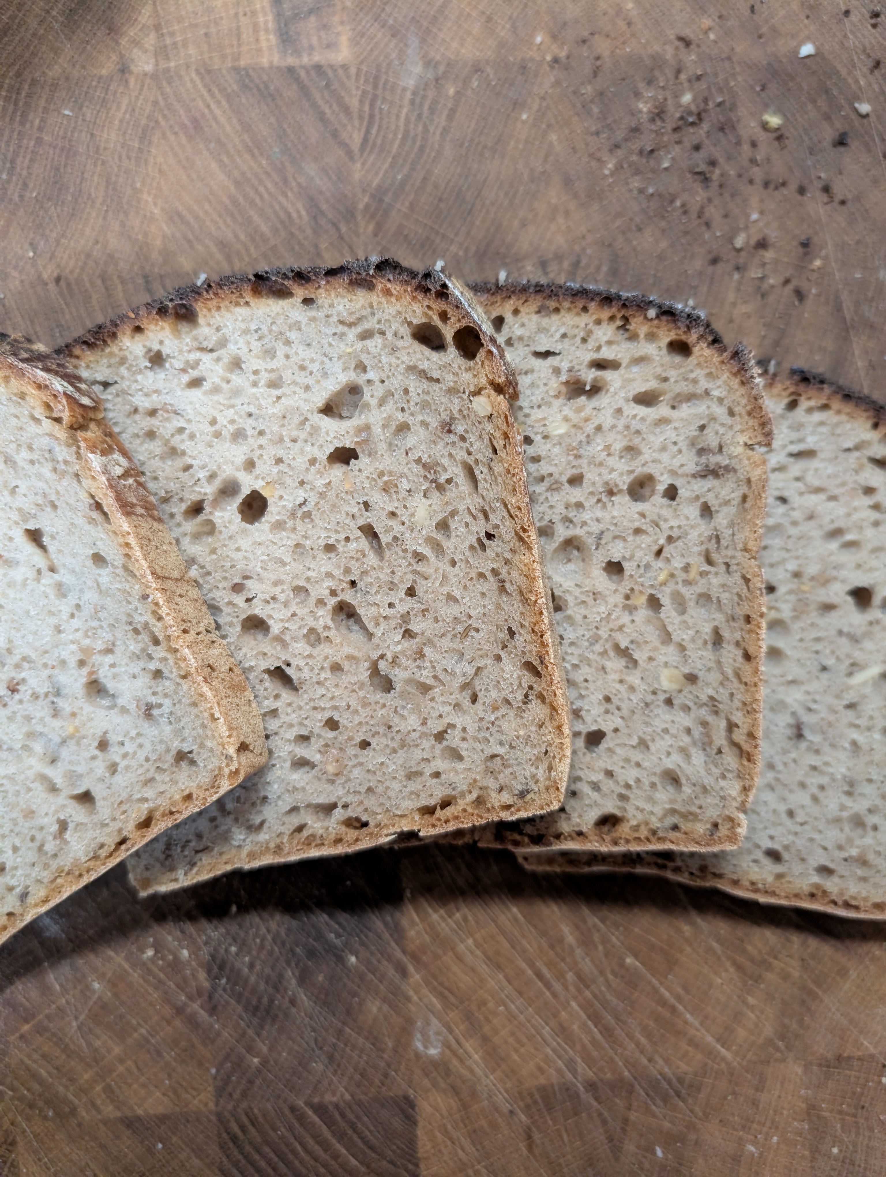 leider keine lange Haltbarkeit, da schmeckt es zu lecker😊; super weich, saftig mit etwas Säure,schönes Universalbrot. Zur Sicherheit werde ich es beim nächsten Mal mit 2g Hefe versuchen, da ich mit über 1 Stunde Endgare nicht hingekommen bin (war zu kurz).
