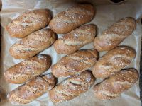 - Anschließend stehen die geformten Teiglinge 45 Minuten auf der Gare. Erst kurz vor dem Backen werden die Teiglinge 2x der Länge nach geschnitten und mit Kümmel und groben Salz bestreut.