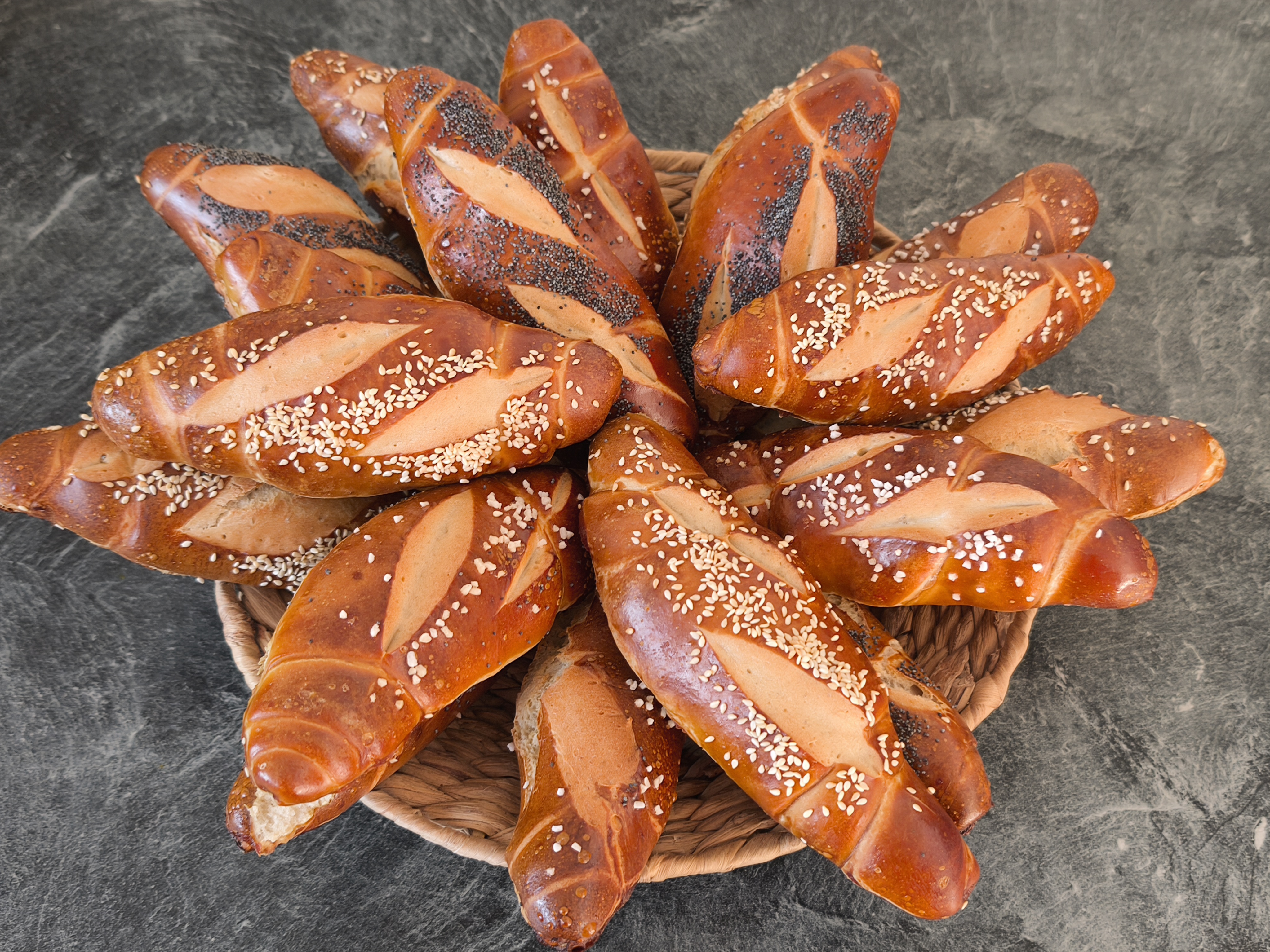 Ich habe Stangen und Brötchen geformt.Außen knusprig,innen wunderbar soft,geschmacklich top.