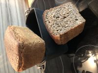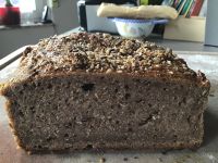 Das schwärzeste von Schwarzbroten, die ich je gebacken habe. Schmeckt fantastisch, mild sauer und mit sehr vielen Roggenaromen. Notgedrungen musste ich einige Anpassungen am Rezept vornehmen: Das Vollkornschrot (ich hatte nur ein Rest von 100 g) hatte ich komplett durch Vollkornmehl ersetzt. Die Endgare habe ich auf 2 Std bei 30 °C verlängert und die Wassermenge um 50ml reduziert. Nun haben wir heute zum Frühstück ein sehr aromatisches und vollmundiges Brot gegessen. Danke für das unkompliziertes Rezept und auch für die neue Schwarzbrot-Serie mit wunderbaren Fotos. LG Ewa