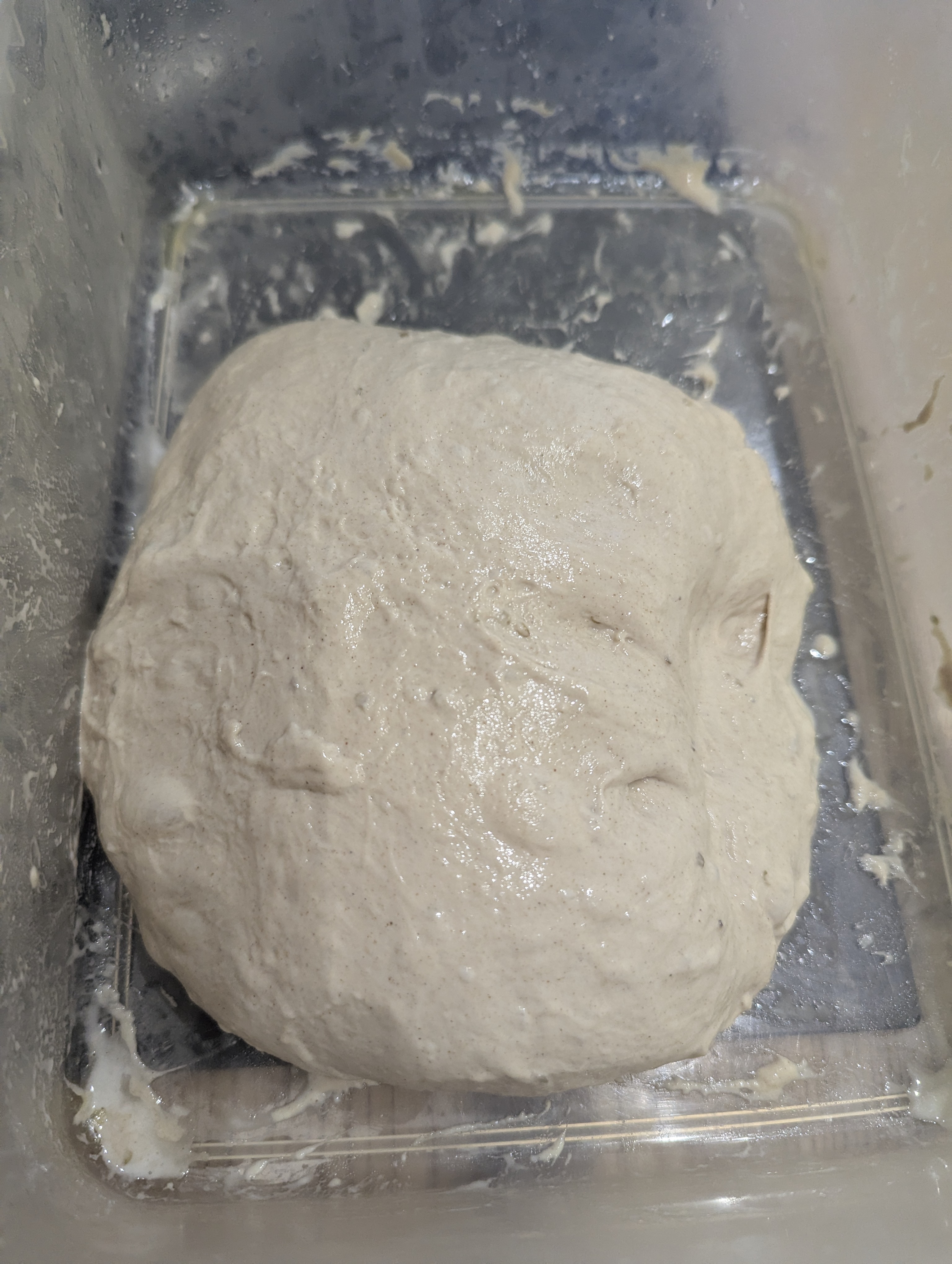 nach 20 Minuten nach dem ersten Schuss Wasser war es immer noch nicht vollständig untergeknetet. Ich hatte den Eindruck, dass der Vorteig bereits so weit gereift war, dass er kein Wasser mehr aufnehmen wollte.