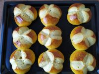 Generalprobegebäck ist ganz gut gelungen, tiefer einschneiden wäre noch gut. Hab zum probieren halbe menge gemacht, also 2x 250g teigling, XL Pinzen quasi 😋 mit herzlichen dank für das rezept!