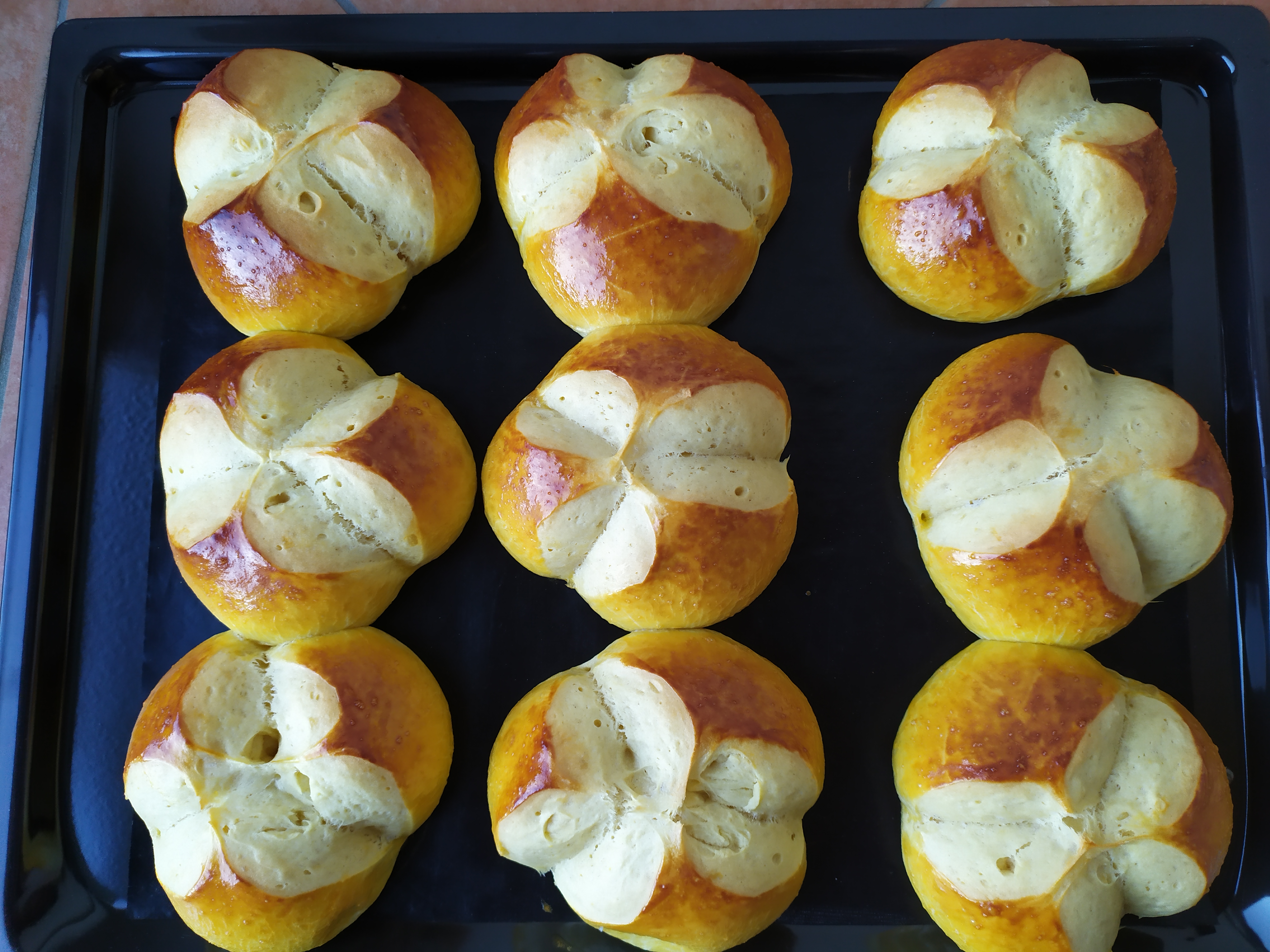Lieber Didi, habe zur Osterzeit die Pinzen probiert. Schmecken gut, sind Bärin die Breite gelaufen und gesprungen. Habe sie in vier Stücken gebacken, bei 180 Grad im Miele Backofen, mit Germteig gehen Programm, das den Teig beim Gehen befeuchtet. Stückgutes 45 Minuten. Habe vergessen, die Pinzen vor dem Formen abzudecken. Ansonsten war der Teig gut zu verarbeiten. Die Butter war vielleicht noch nicht ganz Zimmerwarm. Oder habe ich zu wenig lang geknetet? Würde es gerne wieder probieren. Was kann ich besser machen?