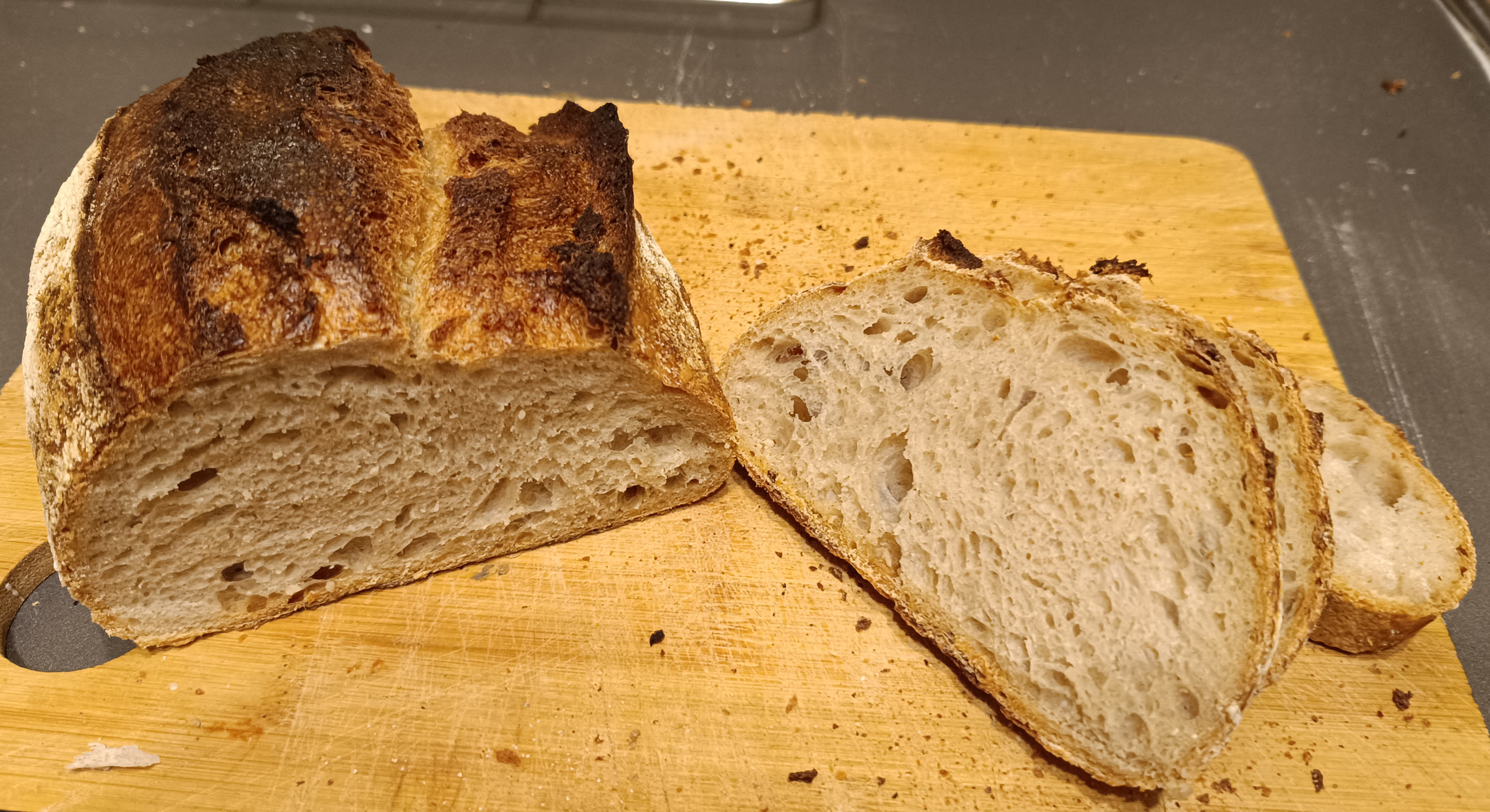 Ich backe seit März Brot aus Neugier – und probiere viel aus. Inzwischen mag ich am liebsten Sauerteig, weil er mich einfach begeistert: nur Wasser und Mehl, ganz ohne Chemie, und trotzdem entstehen so leckere Brote.