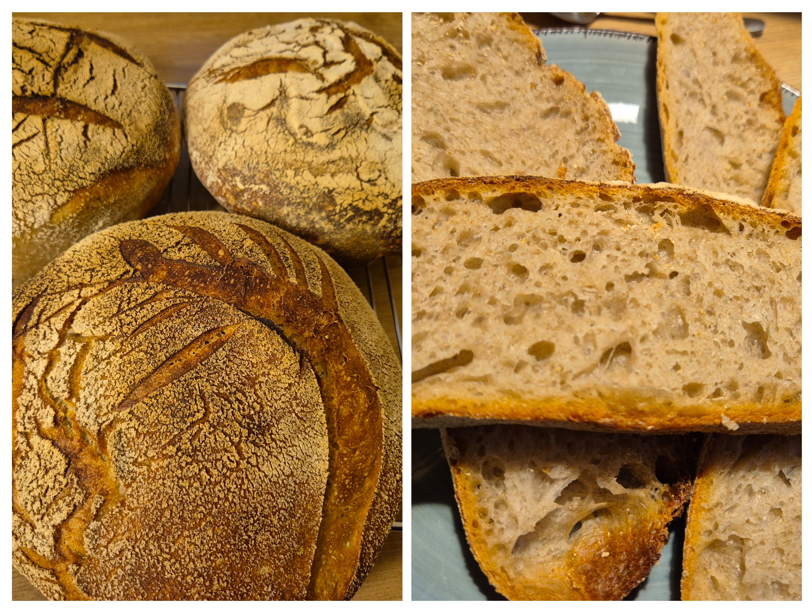 Ich habe drei Brote gebacken, eins oval, eins rund und eins eher dreieckig. Insgesamt sehr wild.