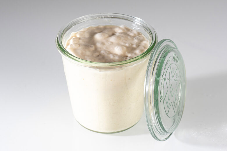 Tipp: Achten Sie bei der Wahl des Gefäßes darauf, dass der Poolish genügend Raum hat, um in die Höhe zu gehen, da dies die Teigentwicklung und die spätere Stabilität des Teiges verbessert.