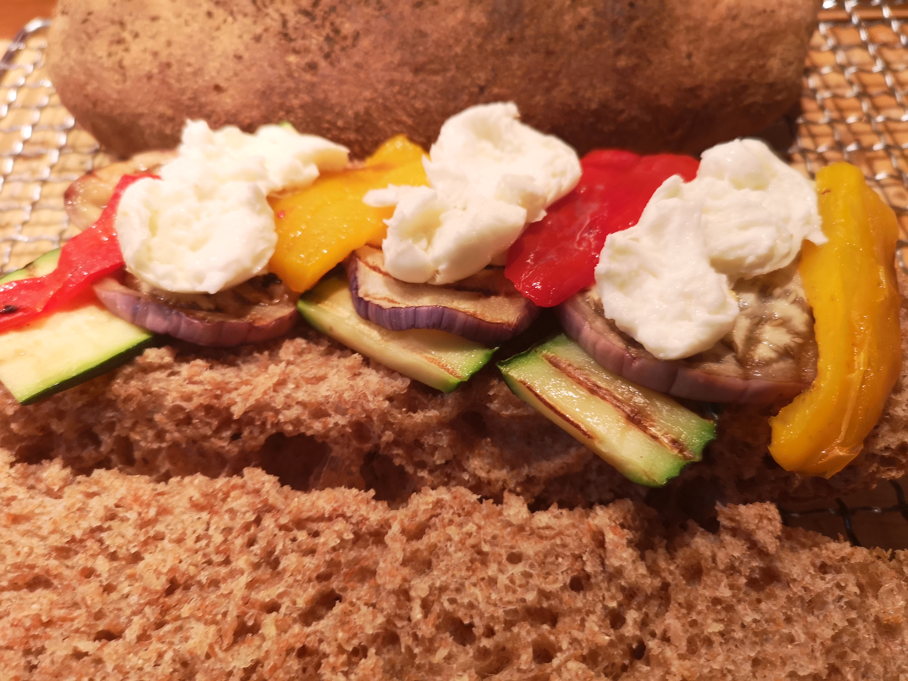 Mit Paradeissauce und Mozzarella belegt, ein Traum.