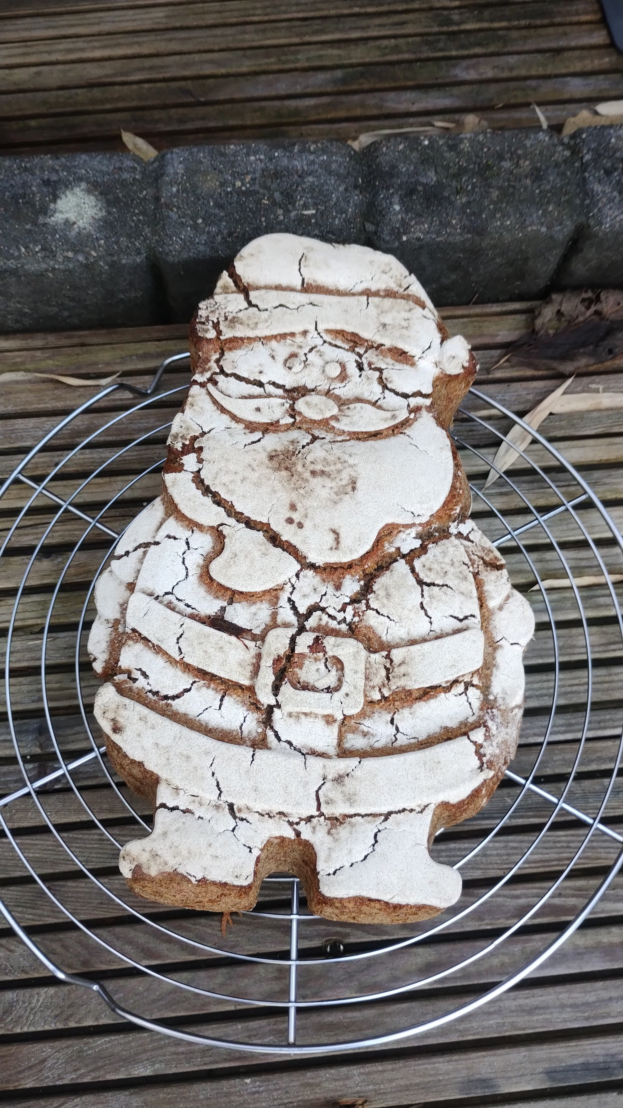 heute mal die Weihnachtsausgabe vom Roggenkorn. Silikonbackform vom Discounter.