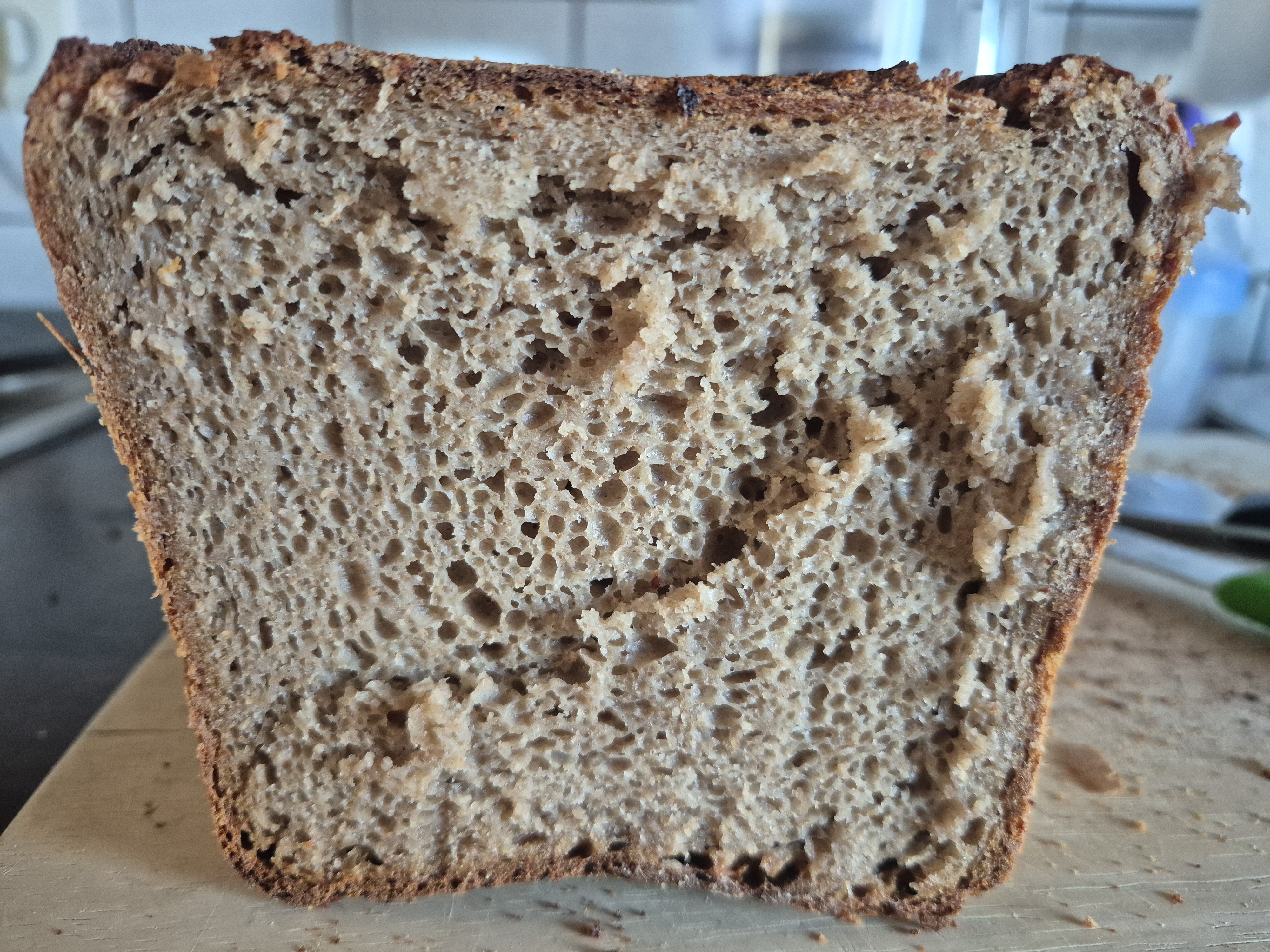 Im Geschmack kam für mich die größte Überraschung! Ein unglaublicher Duft von frischen Getreide durchzog die Krume. Obwohl kein Koch- oder Brühstück oder ähnliches verwendet wurde, war dieses Brot in seiner Herstellung unglaublich in der Frischhaltung. Auch nach dem 5 Tag war die Krume noch feucht und jede einzelne Brotscheibe war ein Hochgenuss.