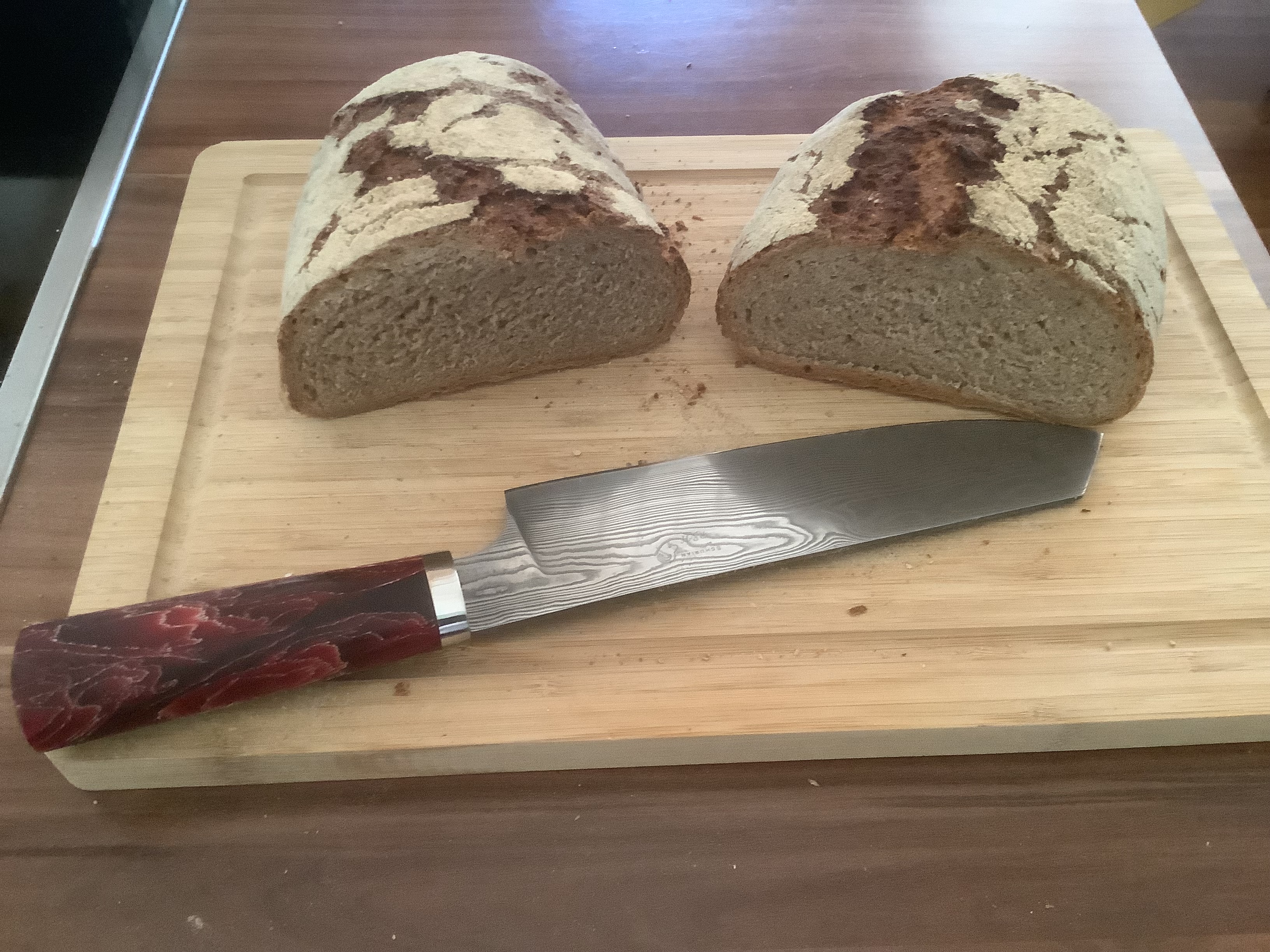 Also grundsätzlich, ich liebe diesen Blog. Nachdem hier aber alle immer nur ihre Erfolgsgeschichten posten, möchte ich auch einmal davon erzählen, was nicht gelungen ist. Bin ja fasziniert von der Idee, Brot ohne Hefe zu backen. Bei den Weissbroten gelingt mir das ganz gut. Nur dieses hier wollte nicht so recht gehorchen. Zwar ist der Sauerteig wunderbar gegangen, das Brot selbst wollte aber nicht und nicht aufgehen. Ich weiß es nicht genau, woran es liegt, es könnte natürlich grundsätzlich ein schwacher Sauerteig sein. Obwohl, bei der Führung ist der Sauerteig eigentlich immer schön hochgekommen. Den Sauerteig pflege und hege ich brav und füttere beziehungsweise verwende ich ihn bestimmt einmal in der Woche. Vielleicht lag es auch daran, dass ich das geformte Brot nicht zu lange garen habe lassen. Nach circa 2 Stunden haben sich noch immer keine Risse gezeigt, so dass ich letztlich die Geduld verloren habe und es einfach in den heißen Ofen geschossen habe. Auch ein Ofentrieb war nicht wirklich fest zu stellen, das Brot ist allerdings auf der Seite aufgerissen. Nichts desto trotz, der Geschmack ist einfach wunderbar und so köstlich, dass ich es wieder versuchen möchte. Optisch und vom Trieb her war diese Siegerländer Kruste allerdings ein Reinfall, so hässlich, dass ich es nicht wage, davon ein Bild zu schicken🤦🏻♂️ Ich hoffe, dass ich mit diesem Bericht auch anderen Mut mache, die hin und wieder Rückschläge hinnehmen müssen. Die Begeisterung fürs Brotbacken lassen wir uns sowieso nicht nehmen.