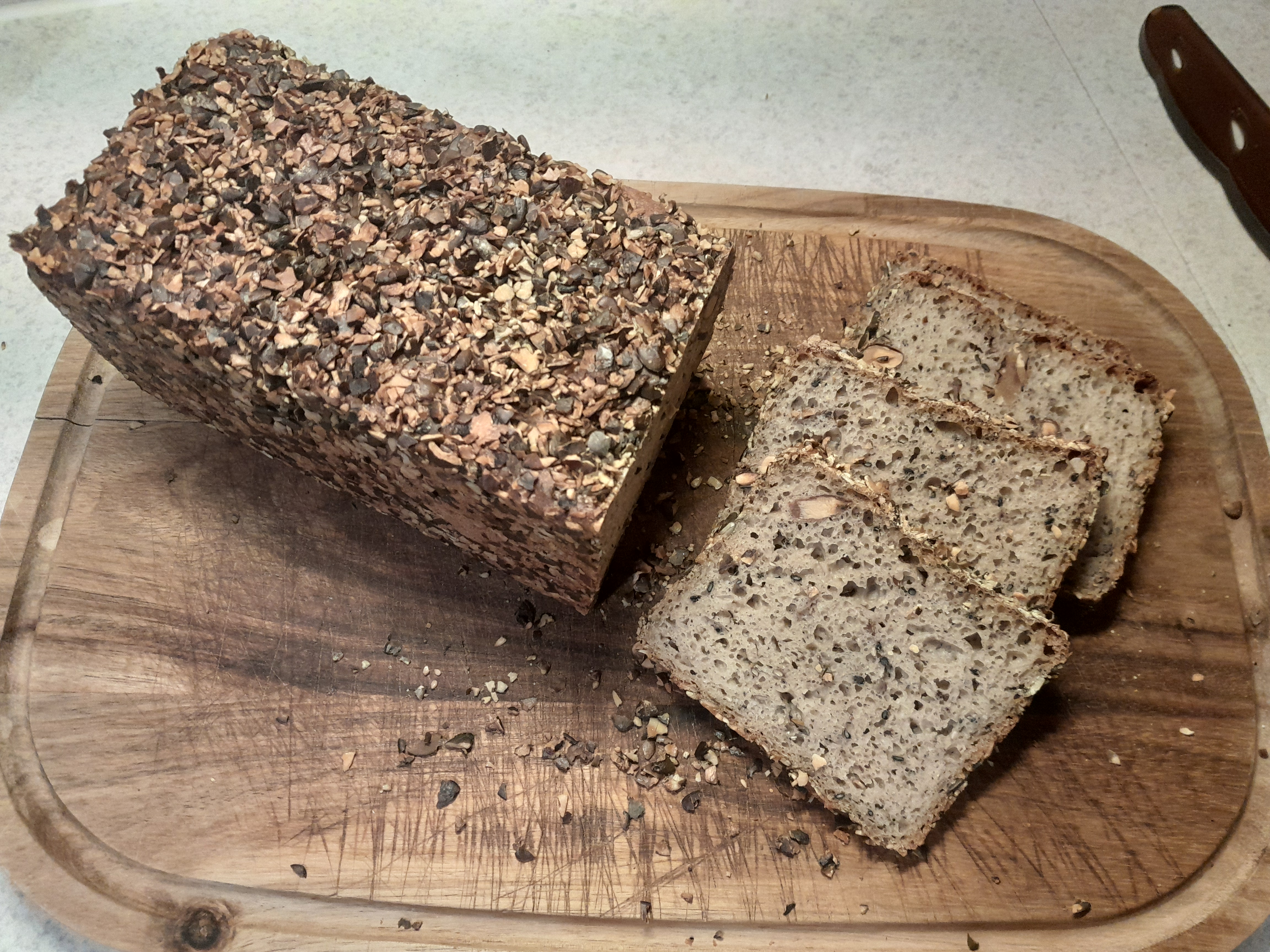 nein, wir haben leider kein Foto gemacht! Inzwischen haben wir dein Dinkelvollkornbrot mit Sonnenblumenkernen gebacken und das wurde toll.