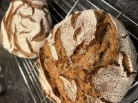 diese Waldviertler Bauernbrote wurden ausschließlich mit VK-Waldstaudenroggen extra fein und VK-Rotkornweizen extra fein gebacken, Reifezeit Sauerteig 4 Stunden und ohne Hefe.