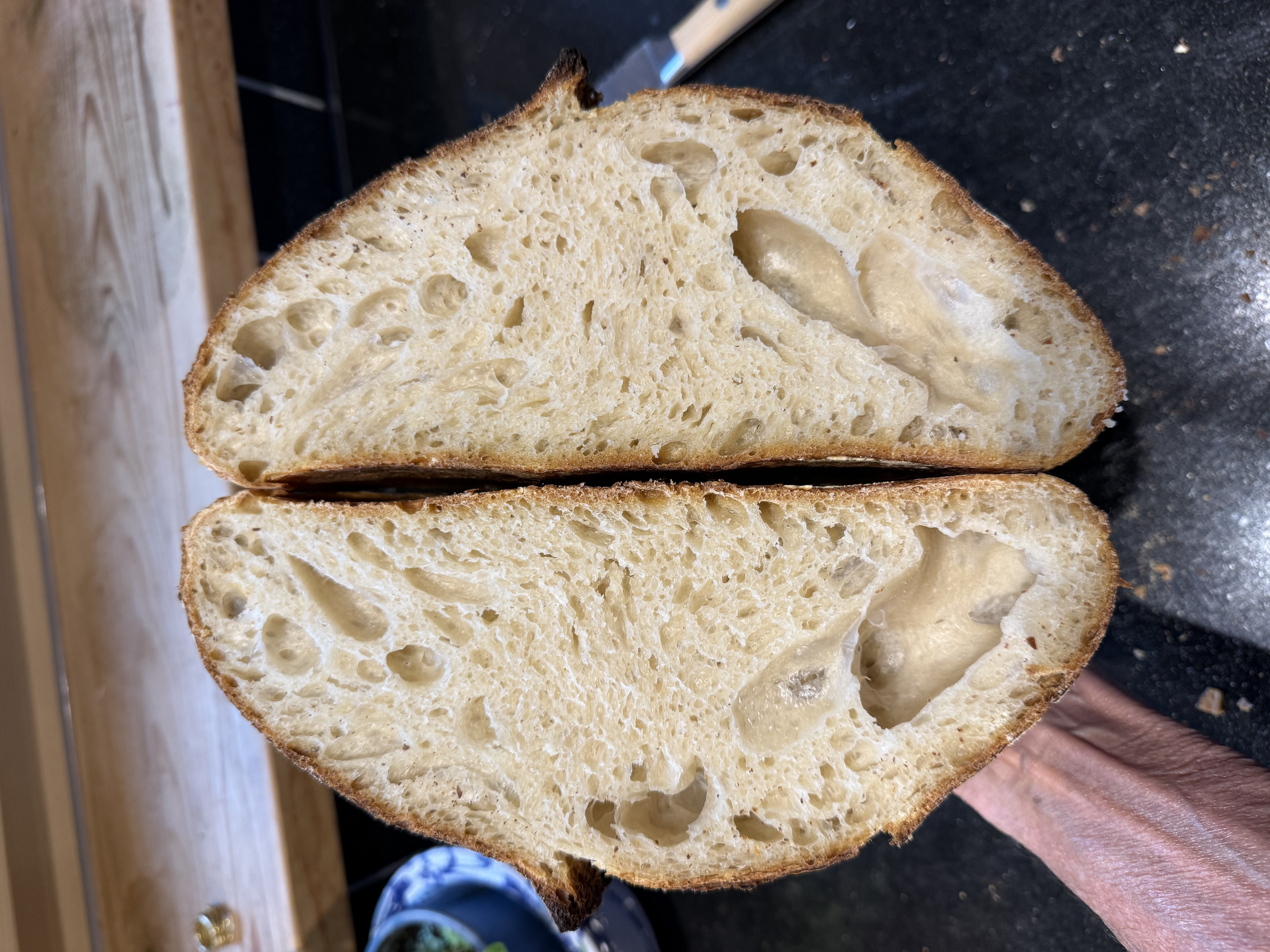 Natürlich ist es einfacher, ein Ergebnis konstant und gleichmäßig in einer gesteuerten Gärbox zu führen, aber hat eine solche? Ich vermute 90 % (95 %) der Leser lassen ihren Sauerteig einfach bei Raumtemperatur reifen und genau dies führt immer zum selben Problem: die Teige lassen sich schwer auskneten, haben eine schwache Gärstabilität und haben im Aromenspiel eine starke Dominanz an Säure.