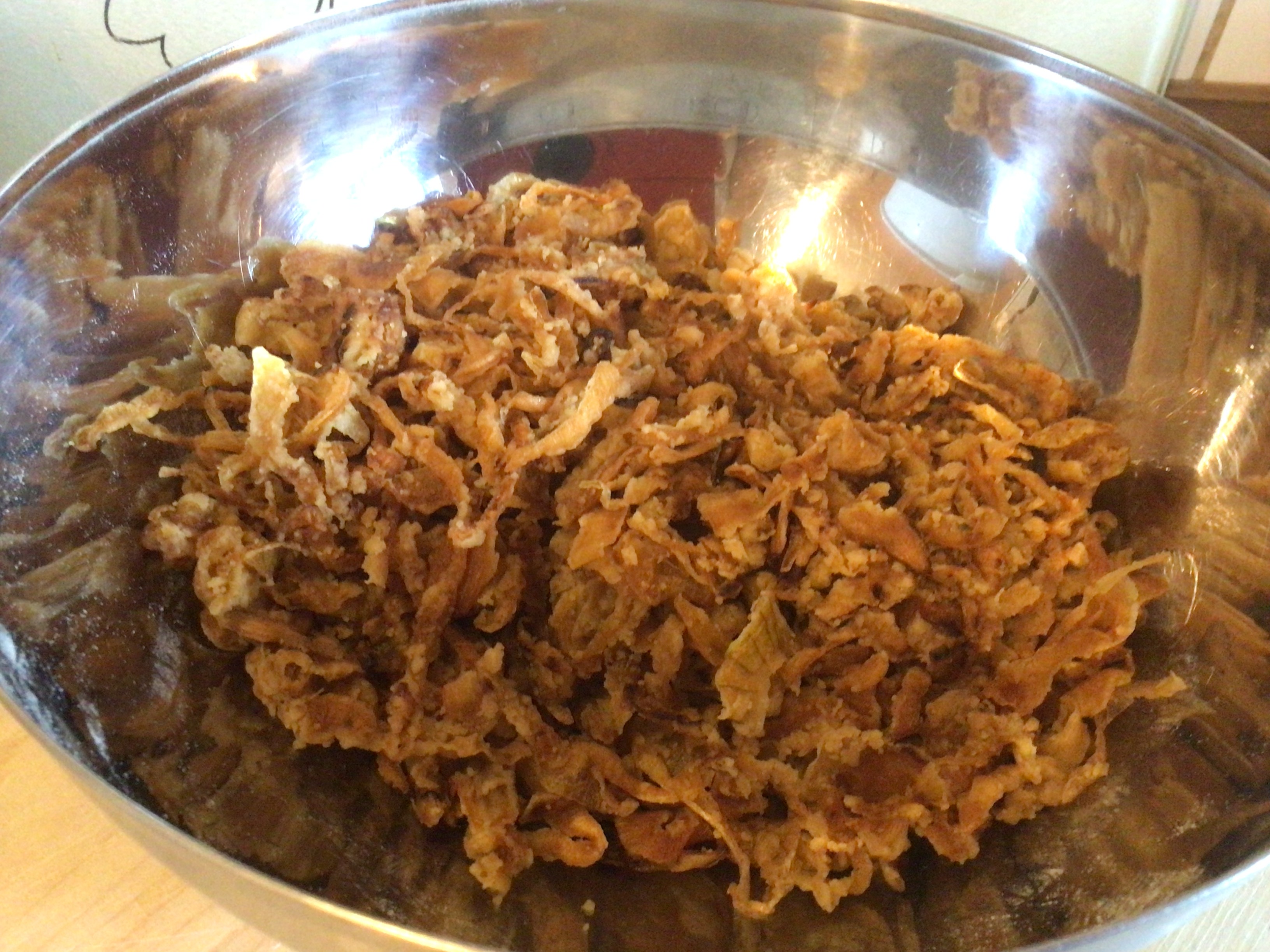 Da für die Teigherstellung Röstzwiebel benötigt werden, gibt es noch eine kurze Anleitung zur Herstellung.